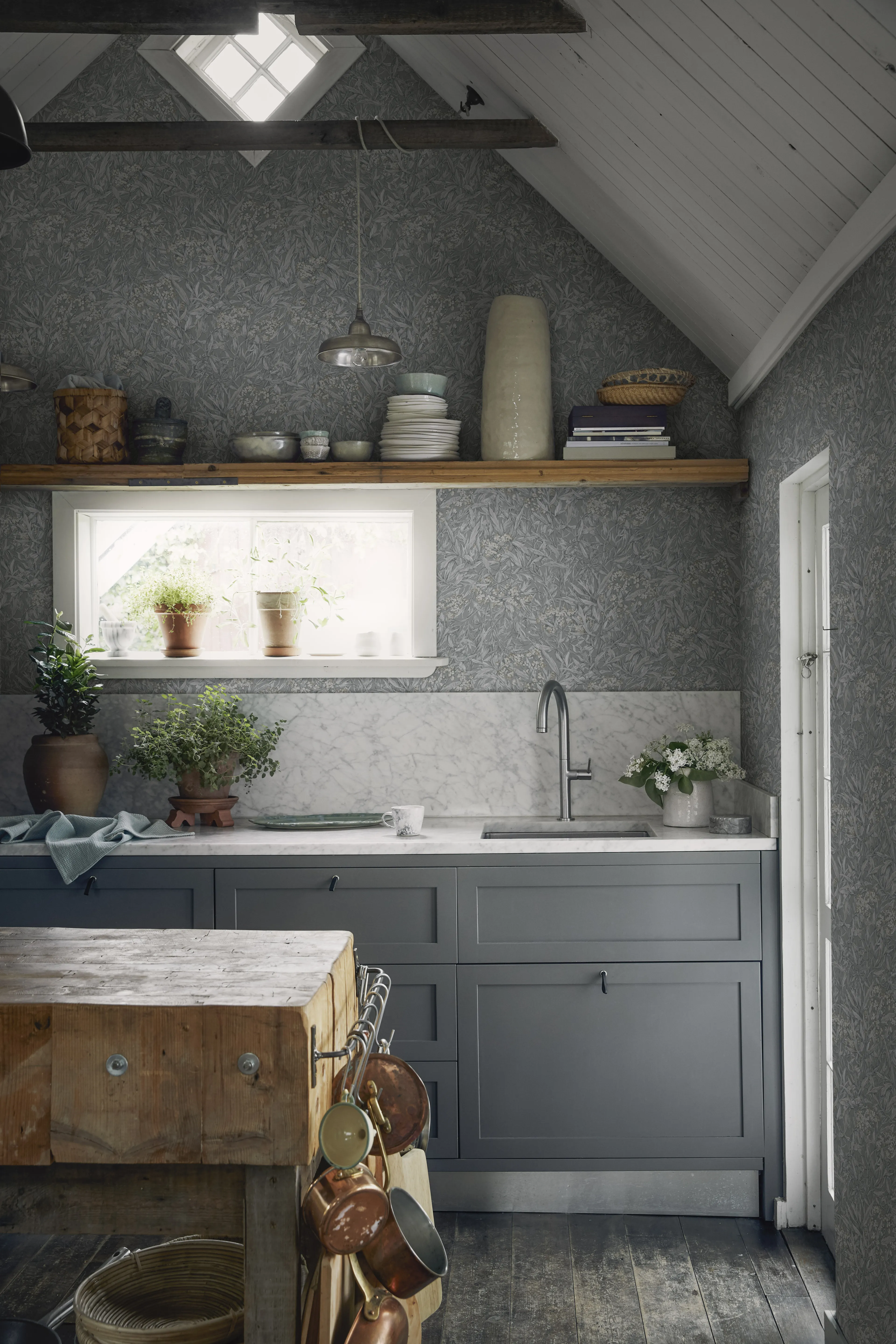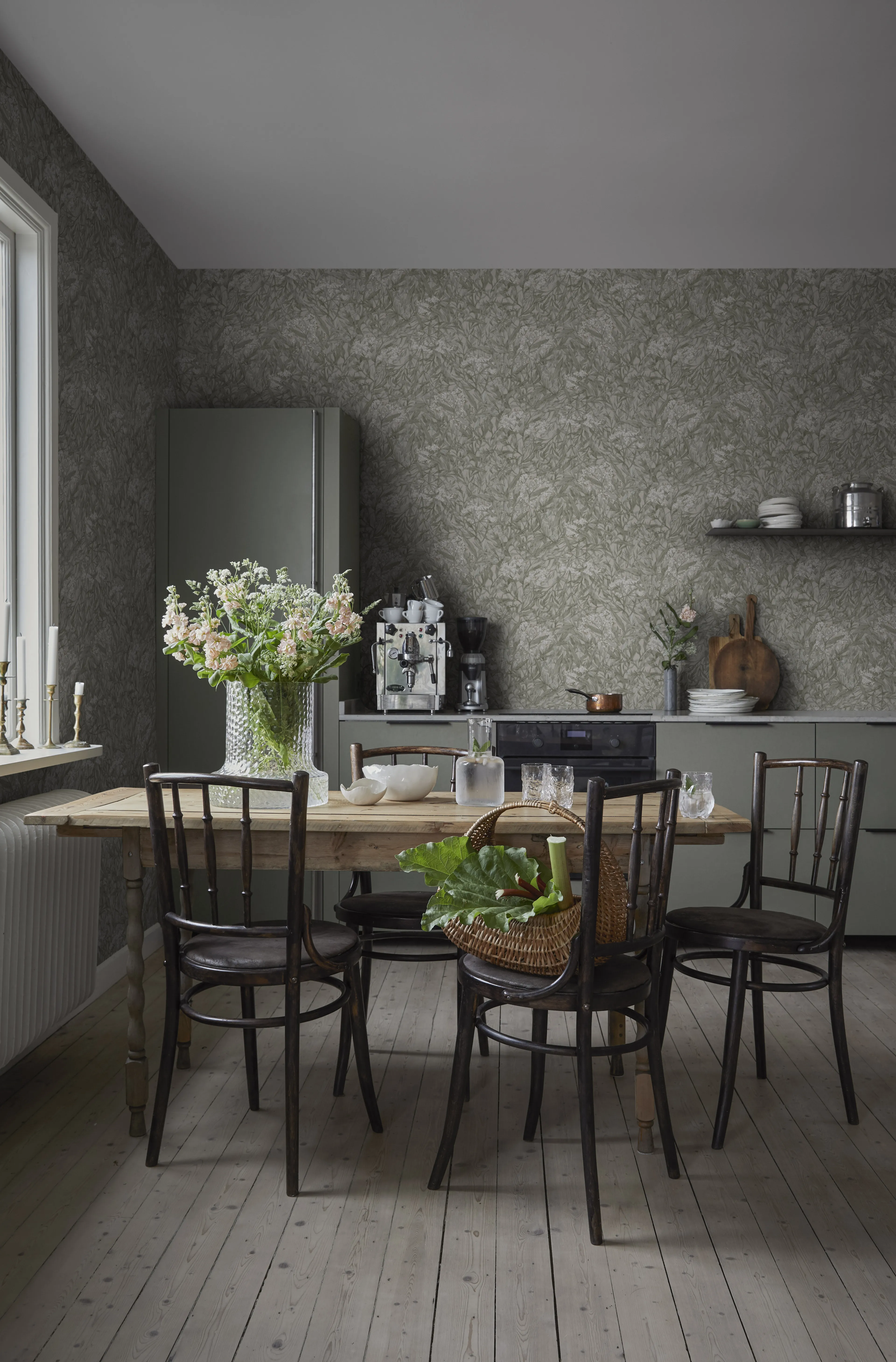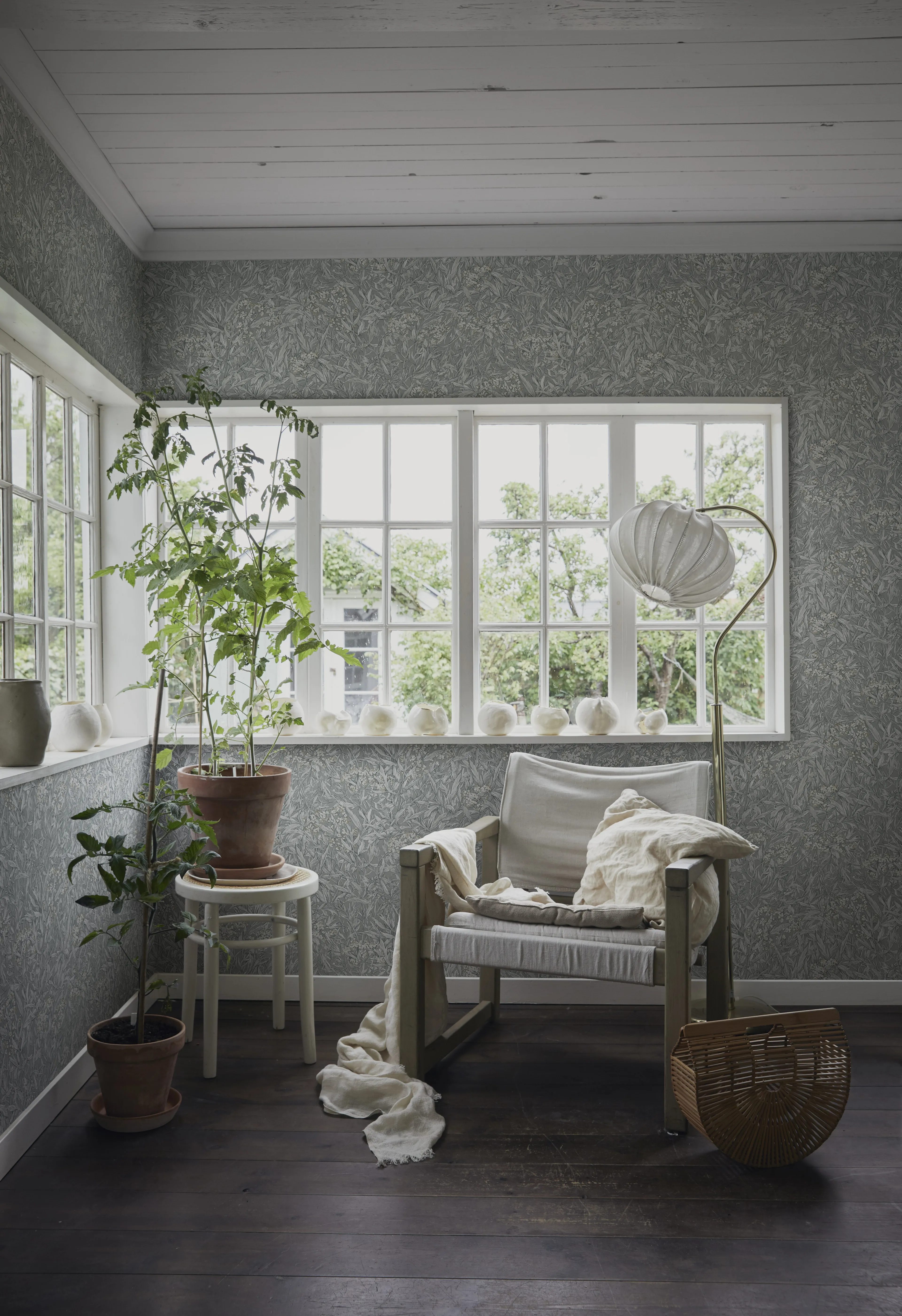 The wallpaper Malin is densely floral and simultaneously modern and timeless. The wallpaper is available in three color options.