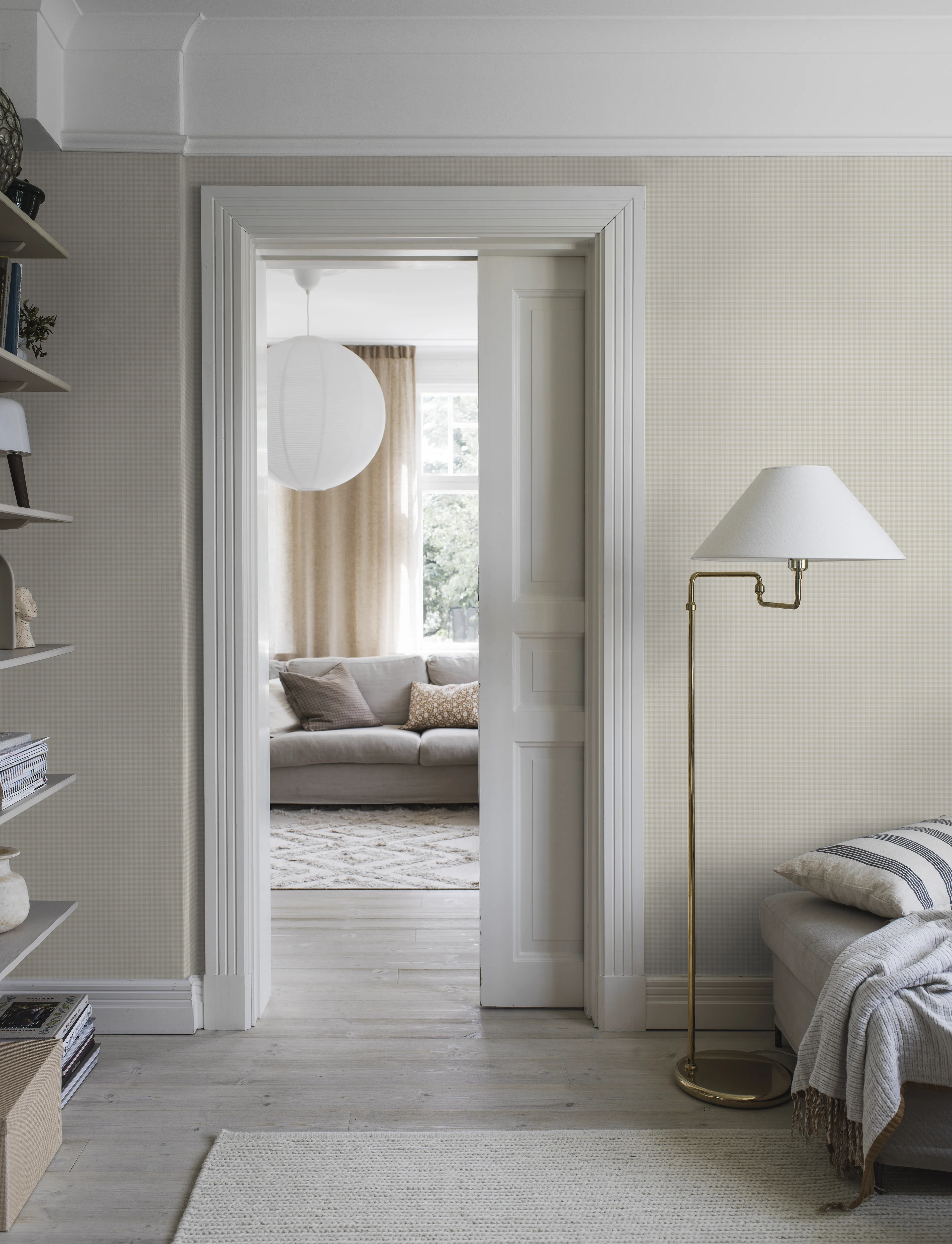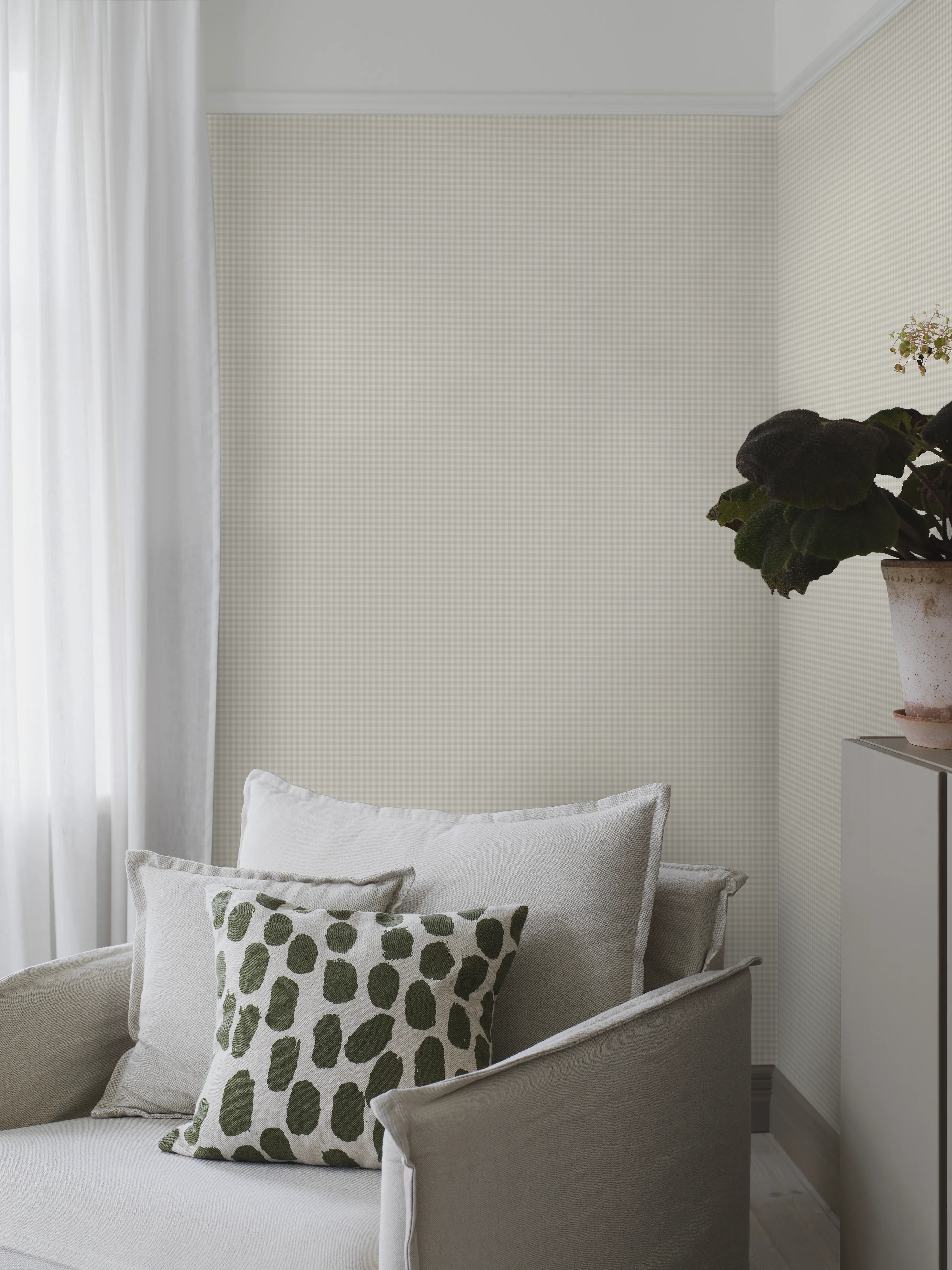 The light color setting, combined with the wallpaper's discreet tactile weave structure, creates a soft, cozy atmosphere – a feeling of warmth and comfort. This, together with its modern expression, makes Picnic Check a wallpaper that bathes every room in a dreamy light, while giving an impression that is both contemporary and classic. A wallpaper that is perfectly in tune with the times, offering timeless beauty and charm to your home.