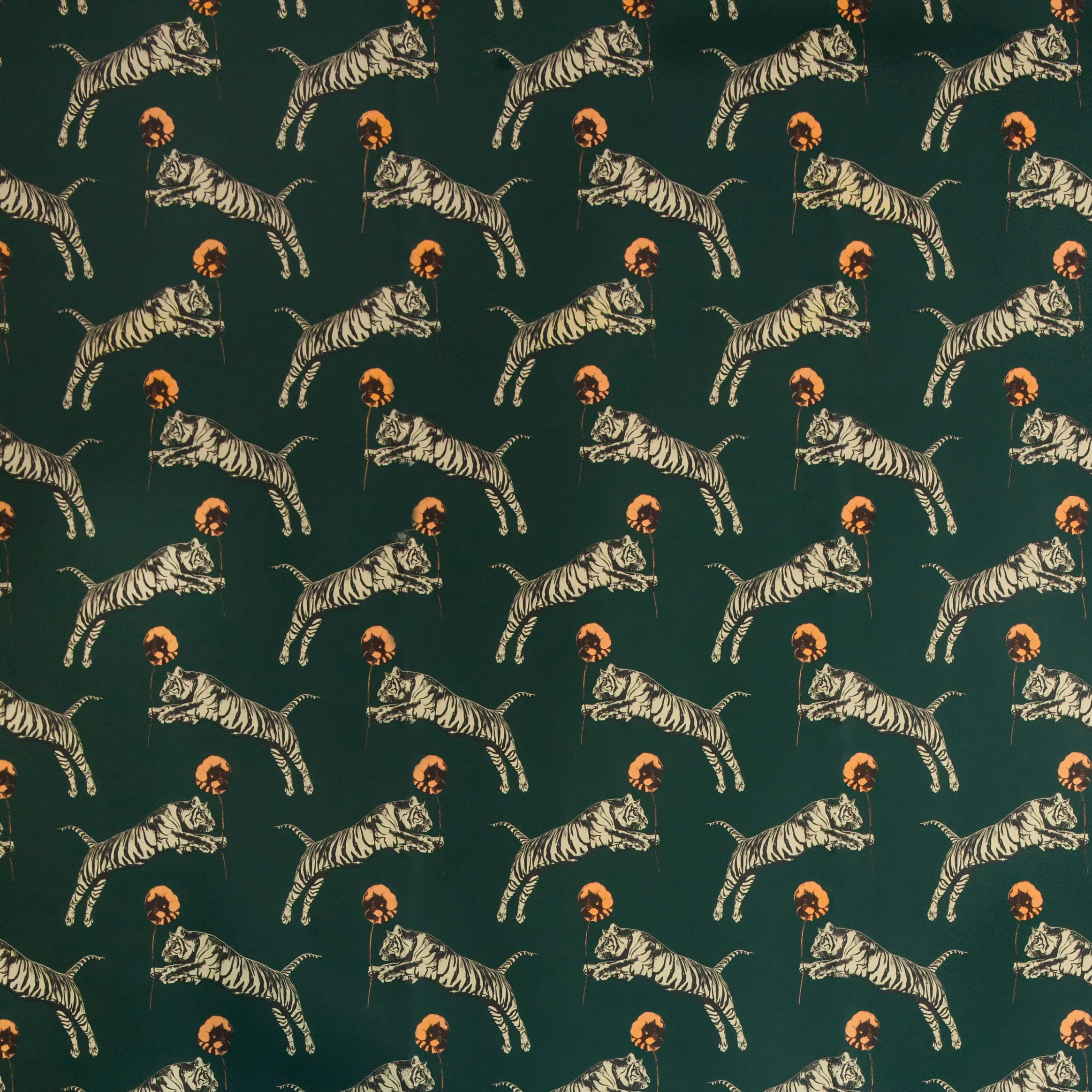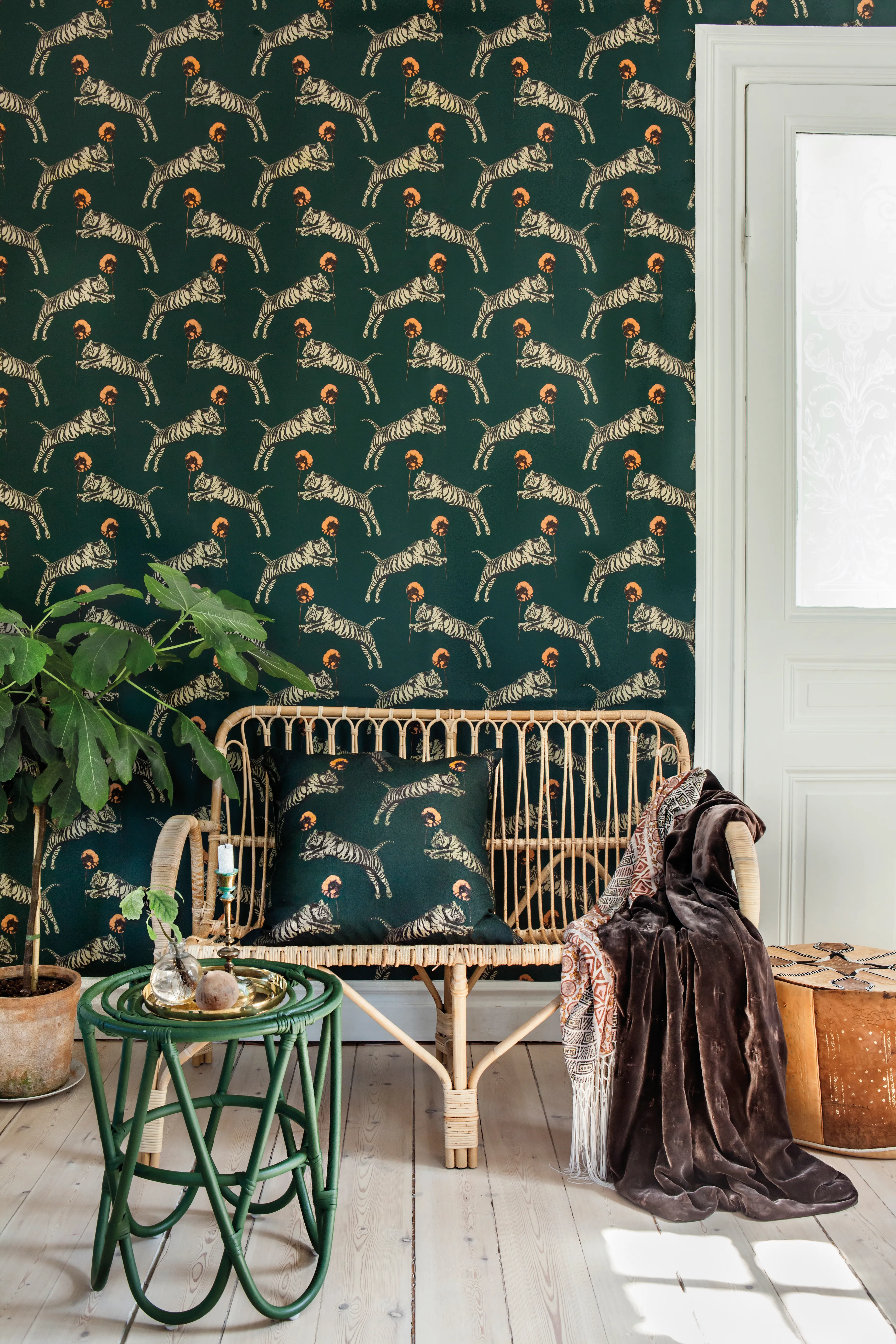 Wallpaper Poppy with jumping tigers is unique and bold. The wallpaper is playful and tough - suitable for teenage rooms, hallways, or children's rooms but also as an eye-catcher in the living room or bedroom.