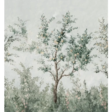 The wallpaper Seasonal Woods is airy and magnificent, a sophisticated choice. The exclusive wallpaper is available with and without a shimmering surface.