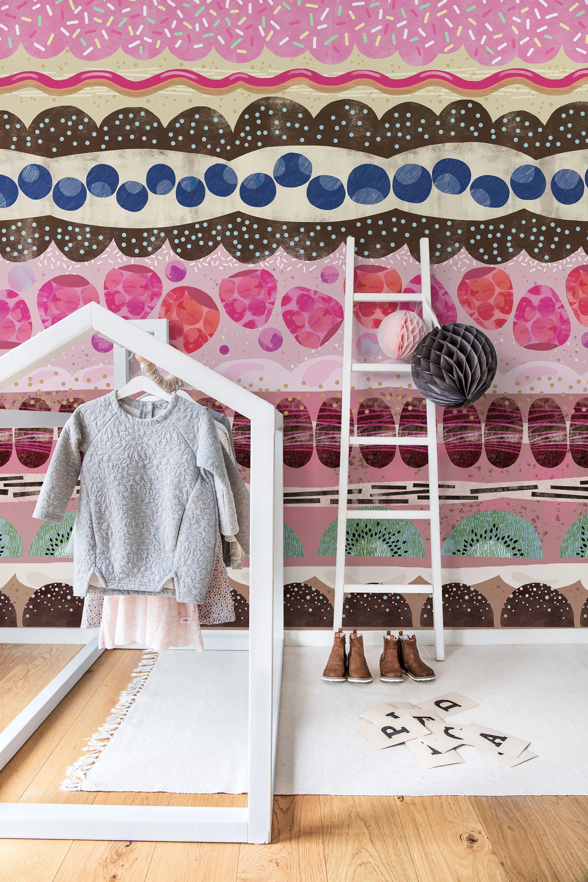 Muraltapeten Sugar Stripes is extra everything: colorful, striped, like a whole candy store. A playful wallpaper for the children's room.