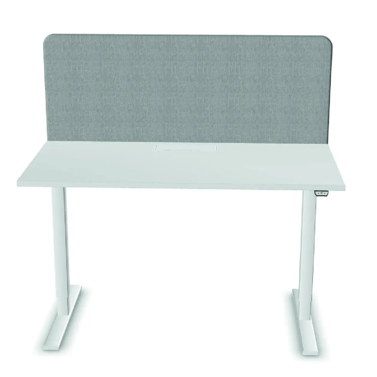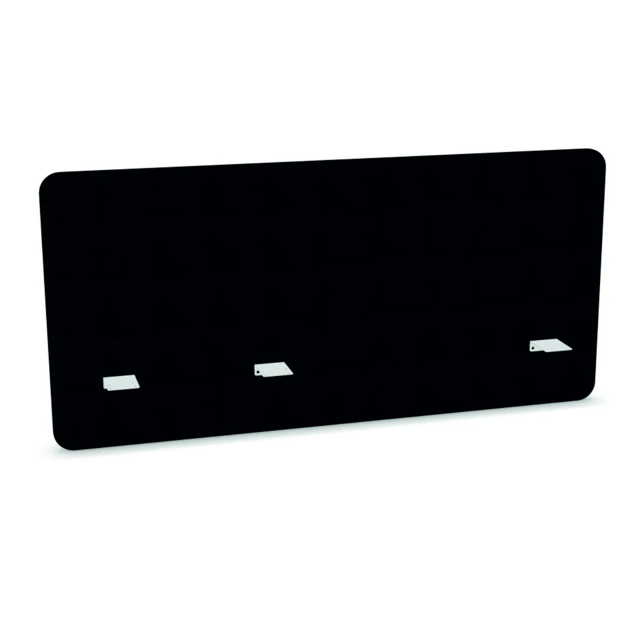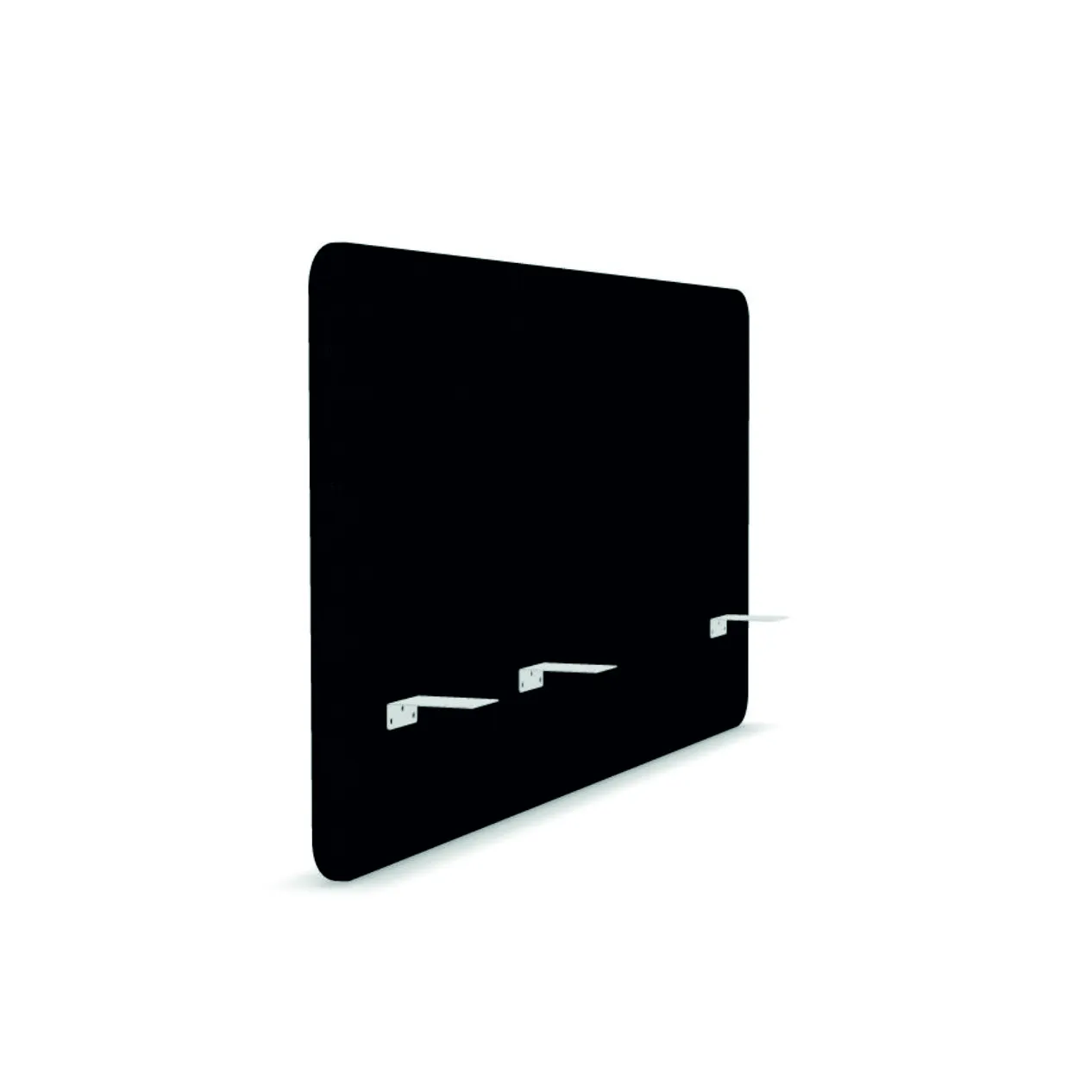 Desk 760 Medium är en akustikskärm som passar 160 cm breda skrivbord. Kombinera med One Medium eller annat arbetsbord i samma bredd. Akustikskärmen i tyg dämpar ljud, avskärmar arbetsplatsen och fungerar bra som anslagstavla. Skärmen fästs i skrivbordet med tre vinkeljärn som ingår. Skärmen är 530 cm ovanför skrivbordet och ca 18 cm under skrivbordet (för att dölja sladdar).