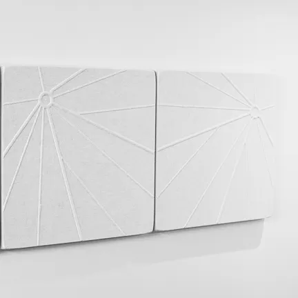 Soften L6 "Web" är en modern fyrkantig ljudabsorberande panel med grafiskt mönster. Panelerna är tillverkade av miljövänligt 100 % polyesterfiltmaterial, som produceras utan skadliga lösningsmedel eller kemikalier. Ljudabsorberande fyllning tillverkas antingen av återvunna eller nya polyesterfibrer, vilket främjar hållbar konsumtion. Produkten har höga säkerhetsbetyg, såsom brandklass B-s1,d0 (EN 13501-1:2002) och emissionsklass M1. Dessutom tillverkas panelerna i Finland, vilket säkerställer kvalitet och stöder lokal arbetskraft.