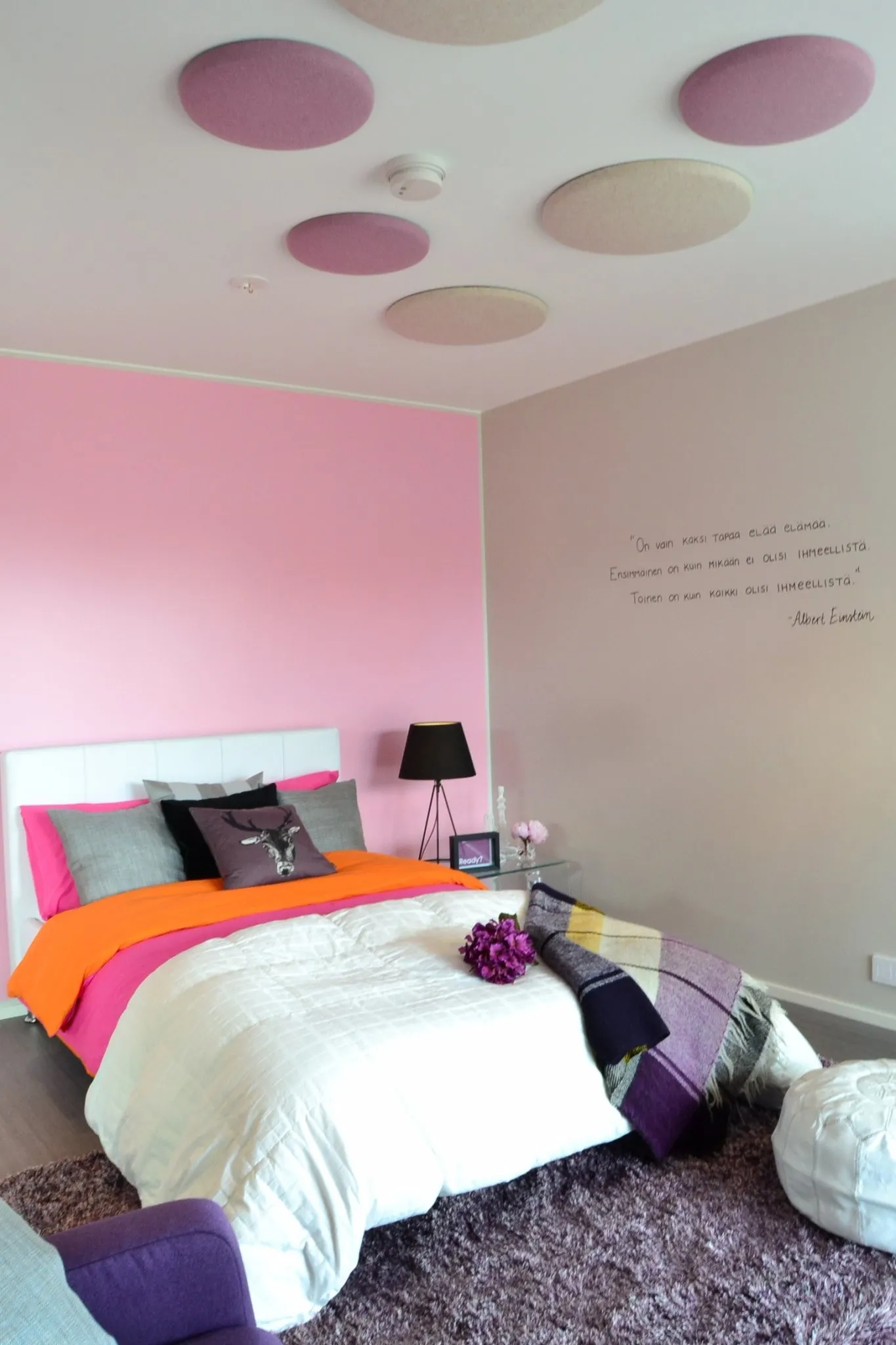 P1-akustikpanelen är söt som godis och har en rund form. Dessa mjuka och runda ljudabsorberande paneler ger glädje och färg till ditt rum. Du kan placera dem enligt din fantasi på väggarna, hänga dem i taket, använda dem som dekoration i korridorerna eller ge ditt rum en uppfriskande inredning.