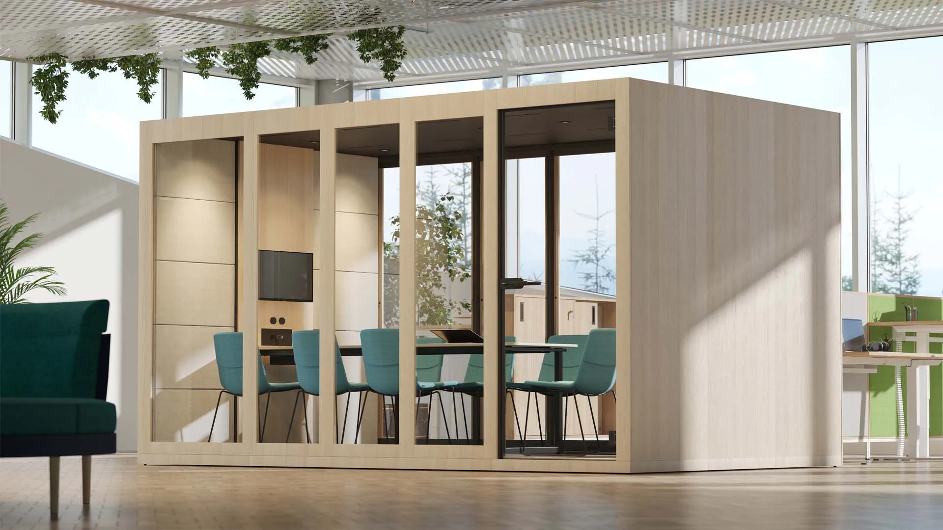 Silent Room Akustikrum kan beställas i ett stort urval material och färger så du får en perfekt akustikrums lösning för ditt kontors behov.
