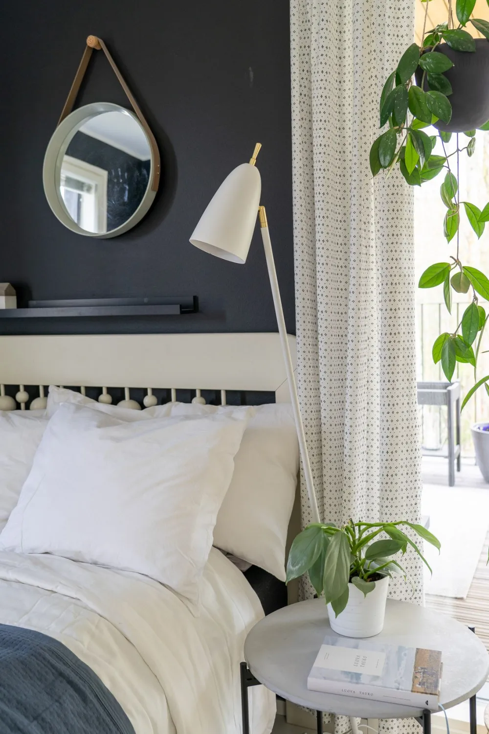 Aiden modern golvlampa från Sessak. Den vackra golvlampan finns i svart eller vitt med mässingsdetaljer.