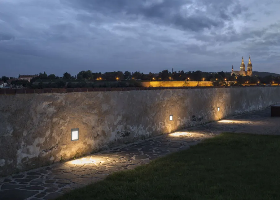 Rendls infällbara led-lampa av rostfritt stål för utomhusbruk. Lampan kan användas på tex husvägg eller mur.