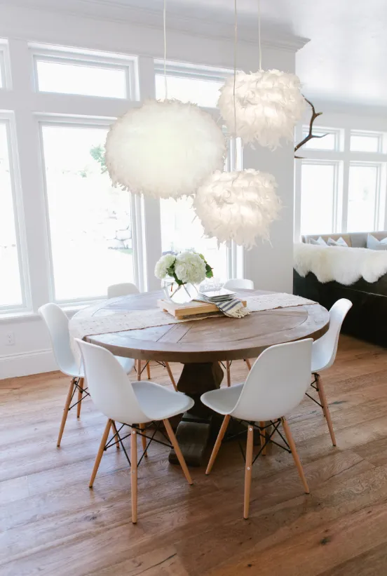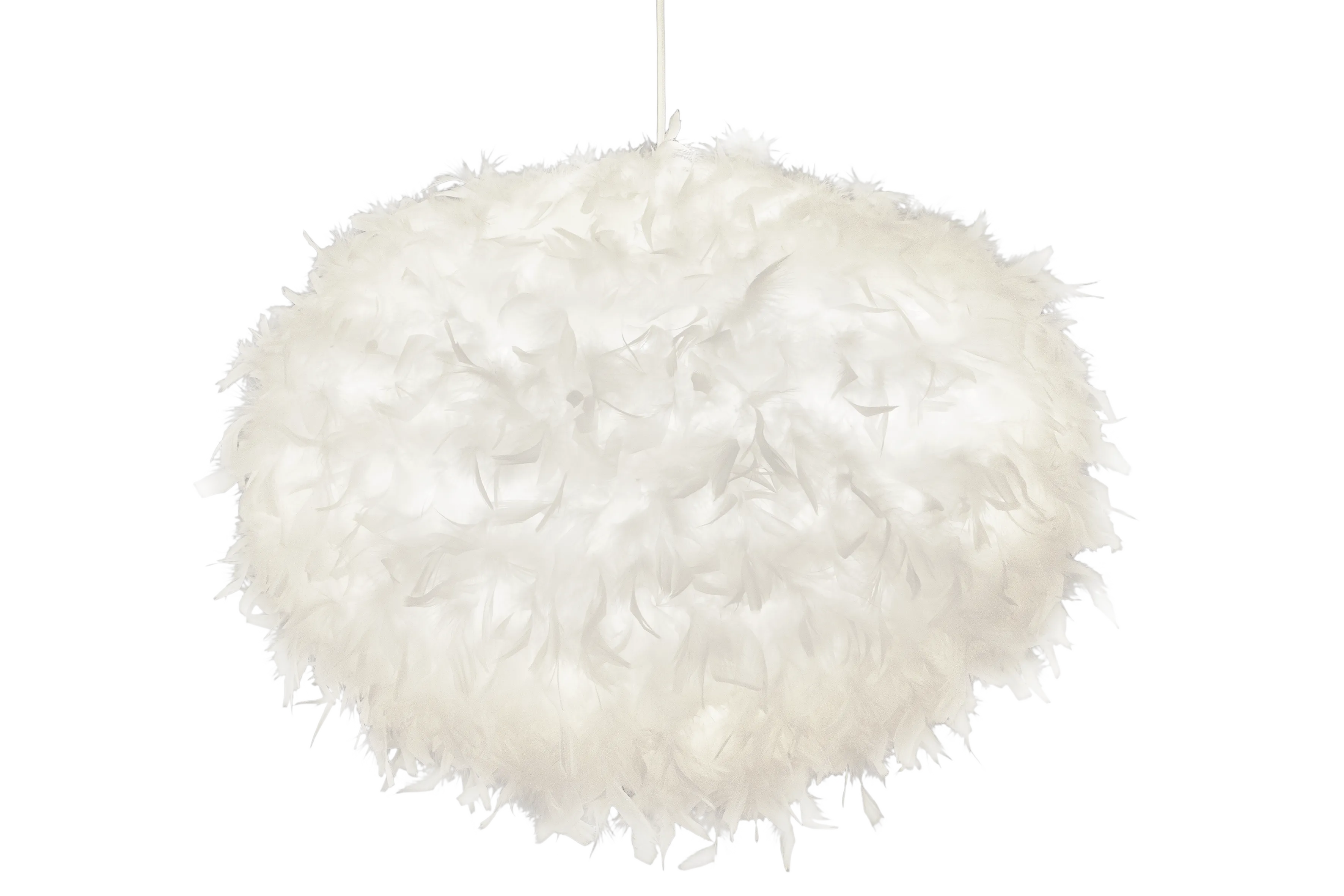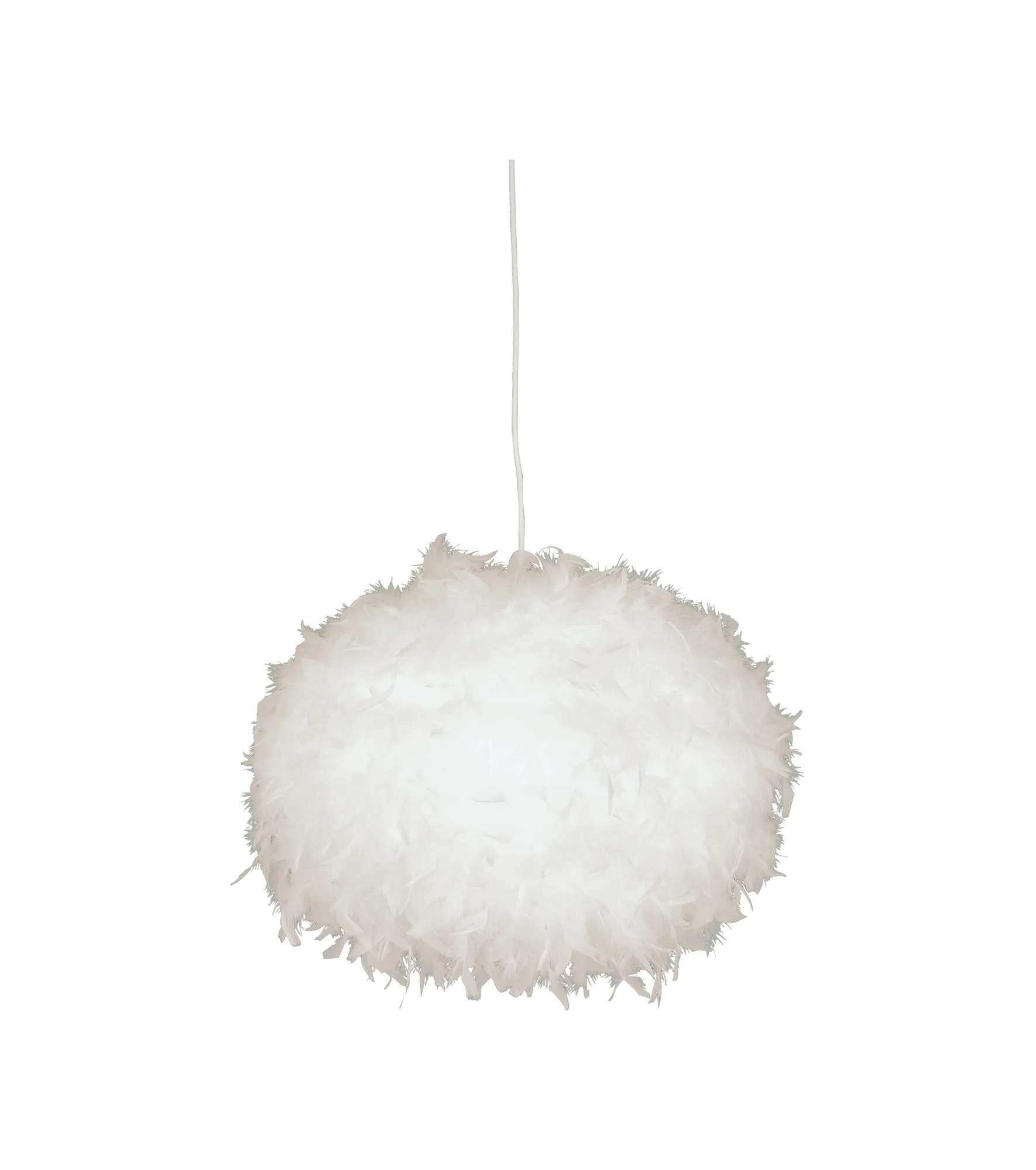 Dun taklampa är höstens trendigaste! Med sina vita fjädrar sprider lampan ett charmigt och mjuk ljus.
