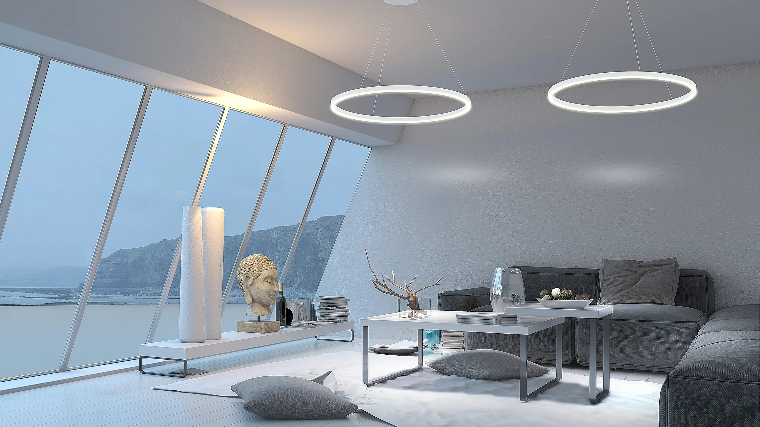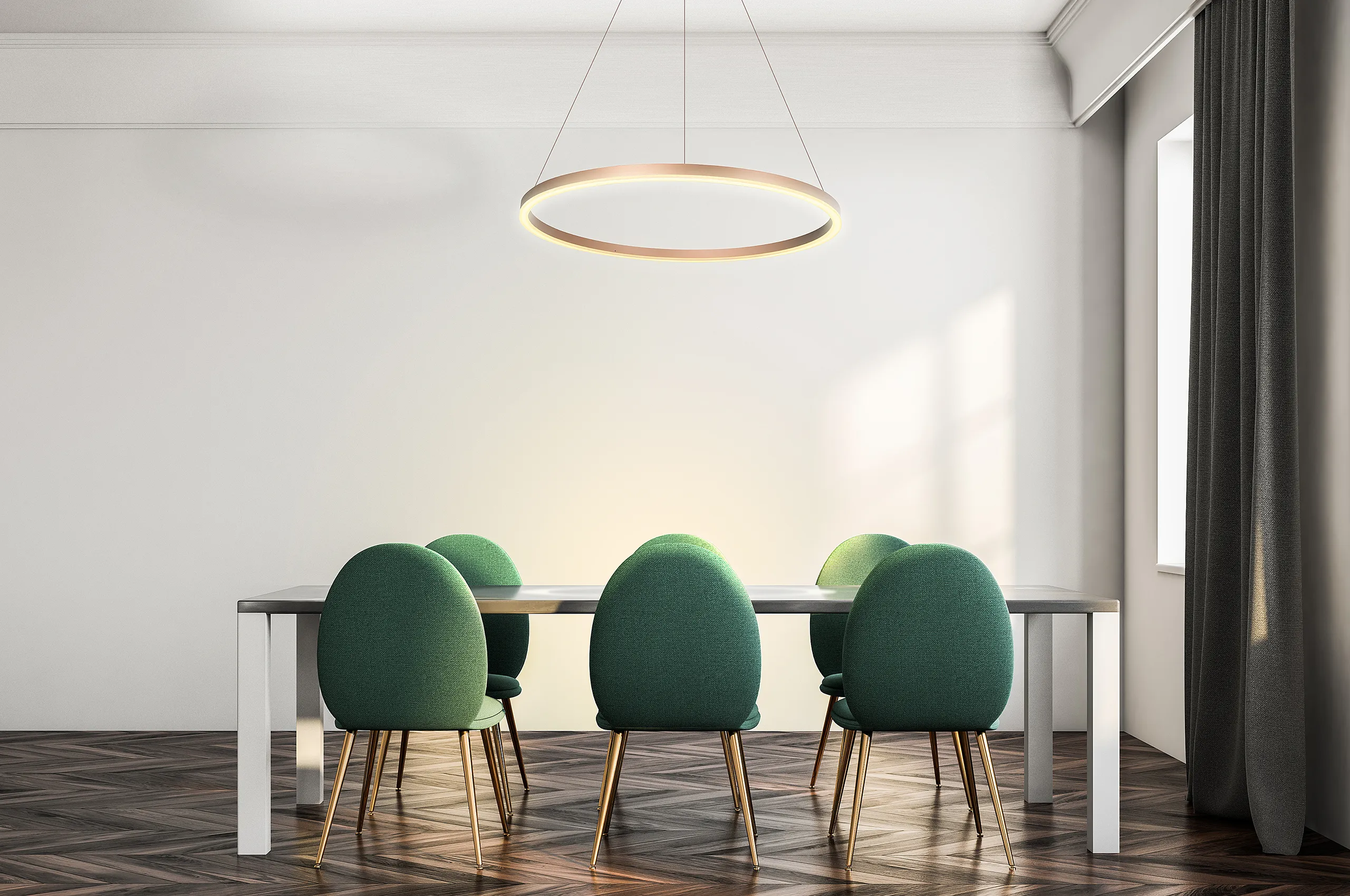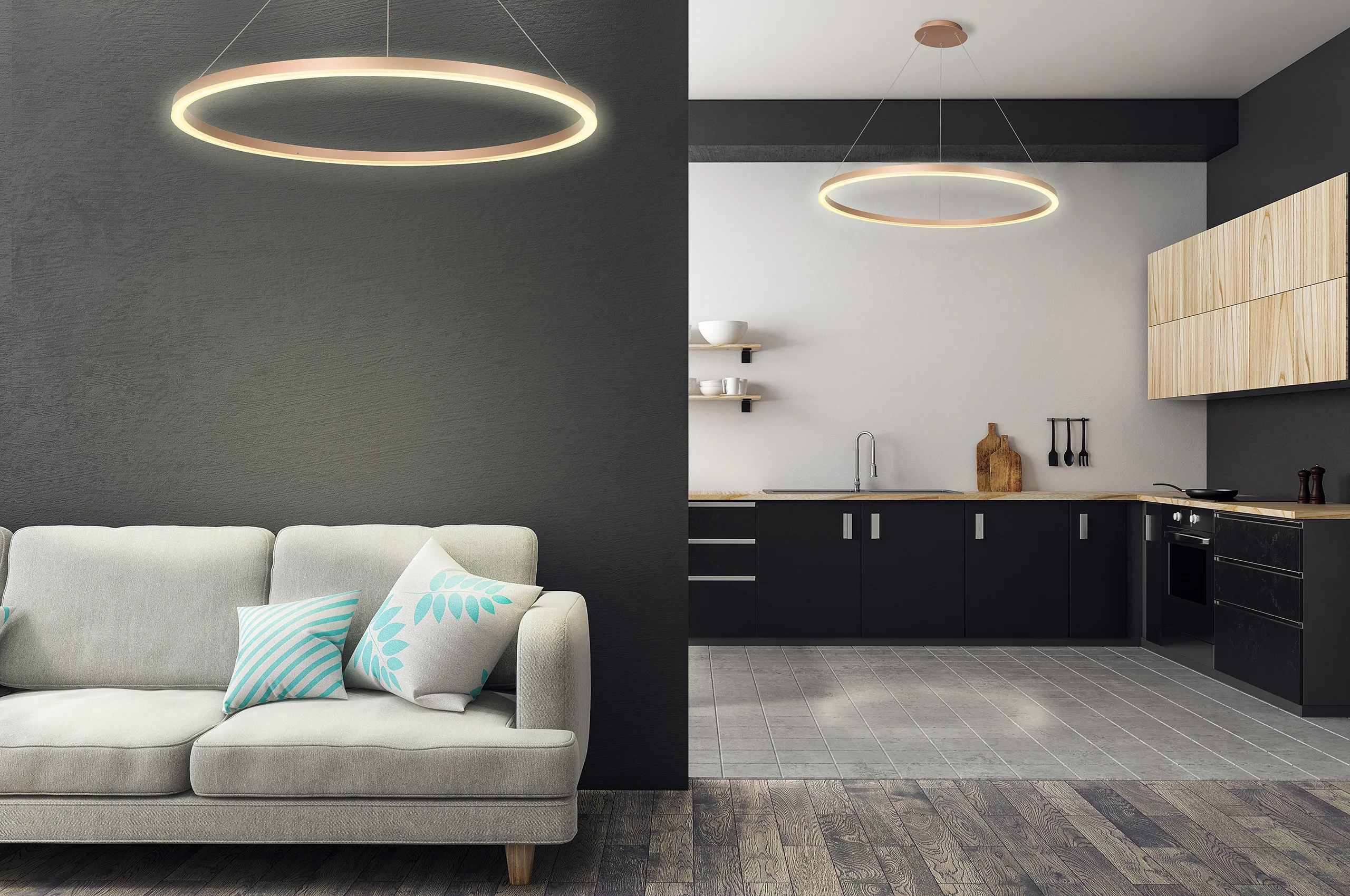 Taklampan Layer 1 är modern och stilren med en ljusring som sprider ett mjukt ljus. Lampan är enkel men samtidigt extravagant. Layer 1 passar bra i offentlig miljö men också i privata hem. Den runda LED-lampan passar perfekt till exempel ovanför mötesbordet, i aulan eller hemma ovanför matbordet där takhöjden är hög. Taklampan är försedd med dimmer. Ljusringens höjd och lutning kan justeras.