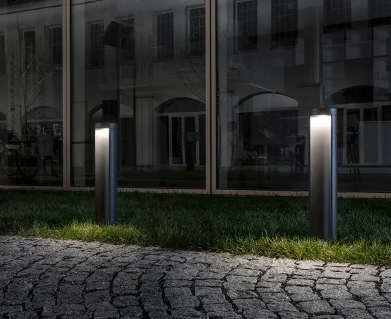 Rendl Sonet 450 pollare. En utmärkt led utebelysning för att lysa upp mörka stigar eller gångar på gårdsplanen fram till huset.
