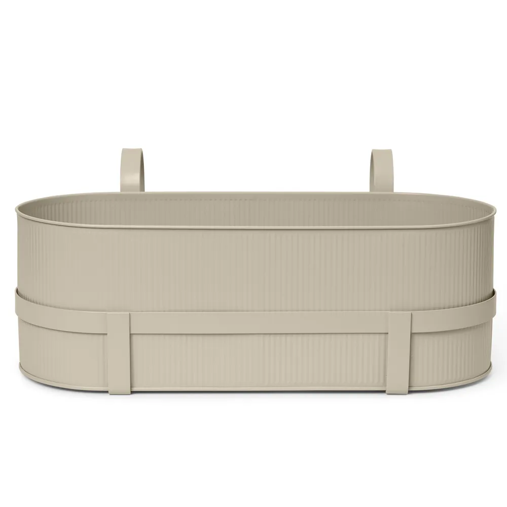 Ferm Living balkonglåda Bau är stilren och snygg med enkla linjer. Balkonglådan är lätt att montera på balkongräcket med två krokar och hänger stadigt. Balkonglådan har inbyggd dränering. Behandlad för att tåla väderväxlingar.