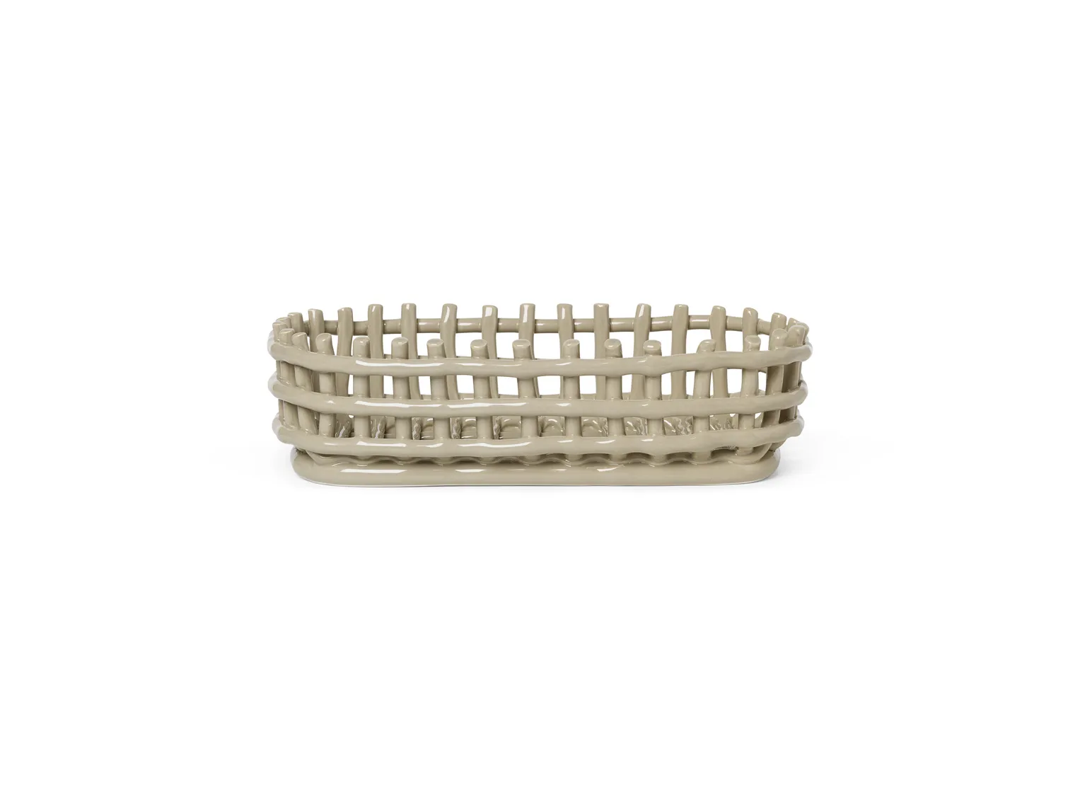 Ferm Livings Ceramic basket är en oval korg i flätad keramik. Korgen kan användas som fruktkorg, brödkorg eller för förvaring av småsaker - upp till dej!
