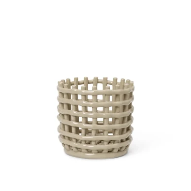 Ferm Livings Ceramic basket är en stor korg i flätad keramik. Korgen kan användas som ytterkruka, fruktskål eller för förvaring av småsaker - upp till dej! Korgen finns i två storlekar och två färger.