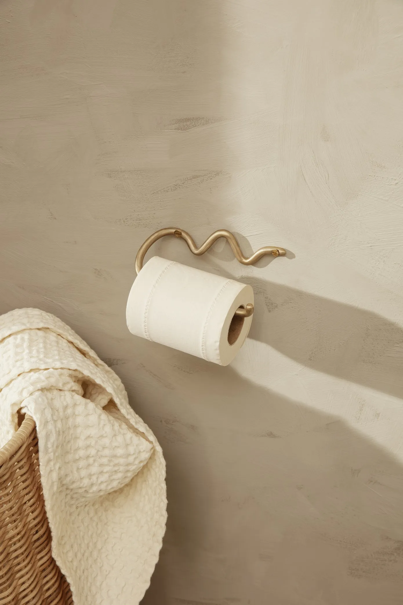 Ferm Livings snygga wc-pappershållare Curvature Toilet Paper Holder i mässing. Produkten är handgjord och unik.