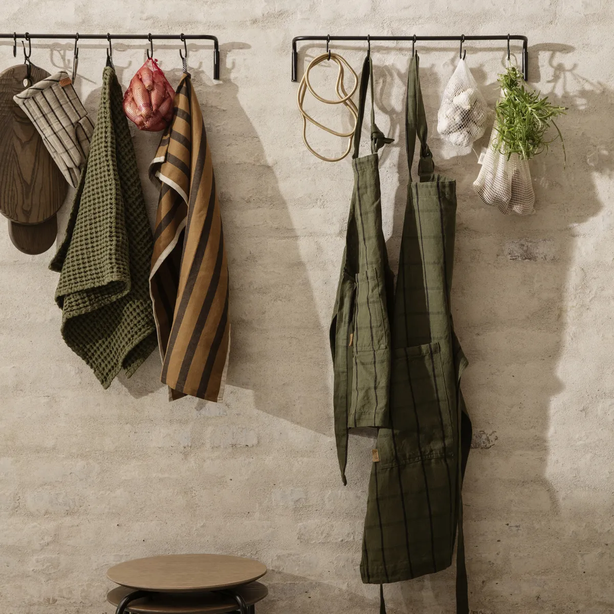 Kitchen Rod köksstång i svart eller mässing. Stången har sex krokar att hänga pannlappar, kökshanddukar, saxar - eller vad du vill på. Sakerna är lättillgängliga men ändå ur vägen. Kan också användas i badrummet för handdukar eller i sovrummet för kläder.