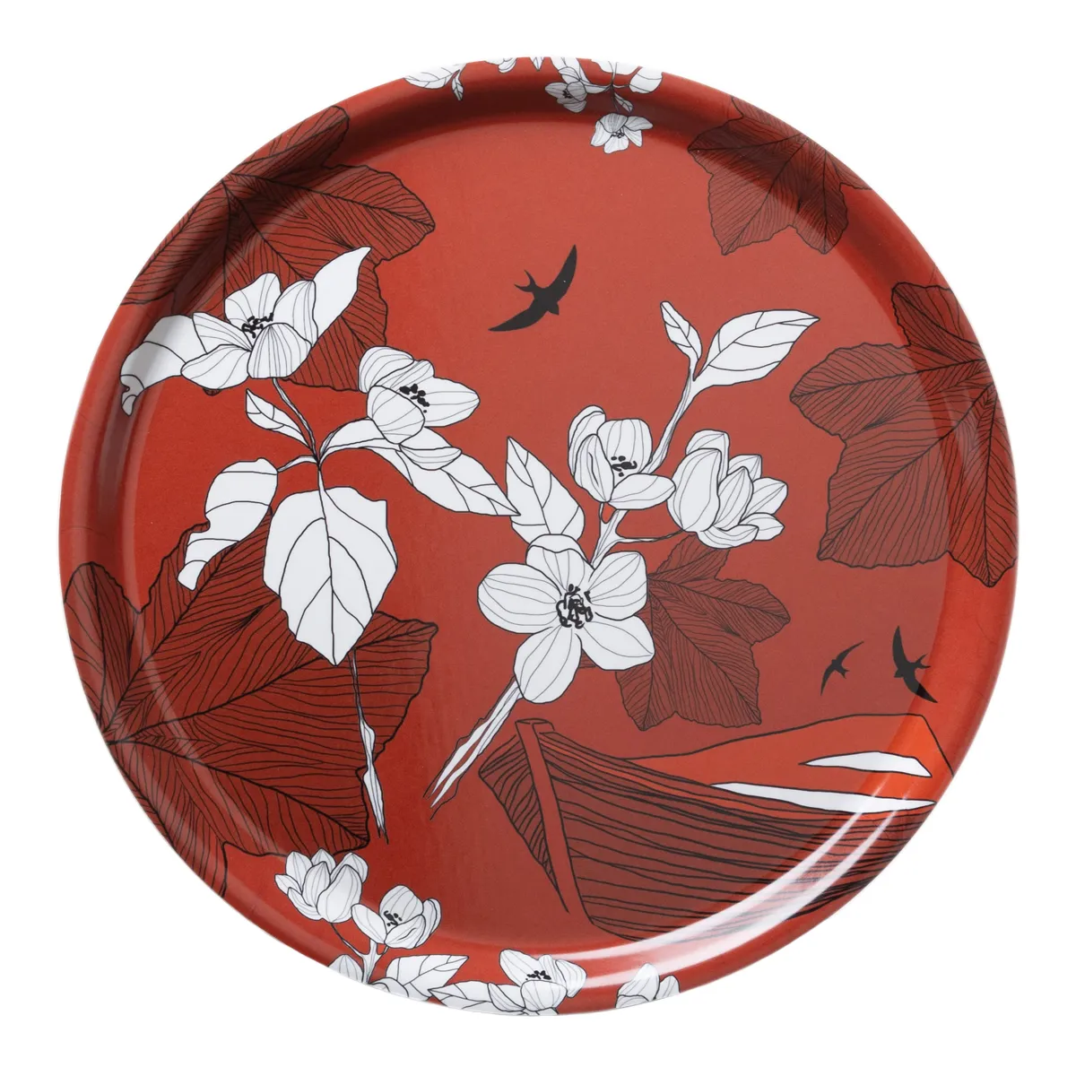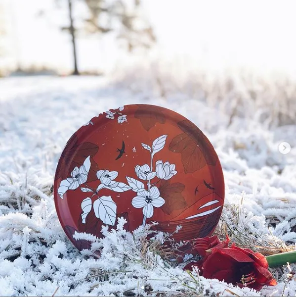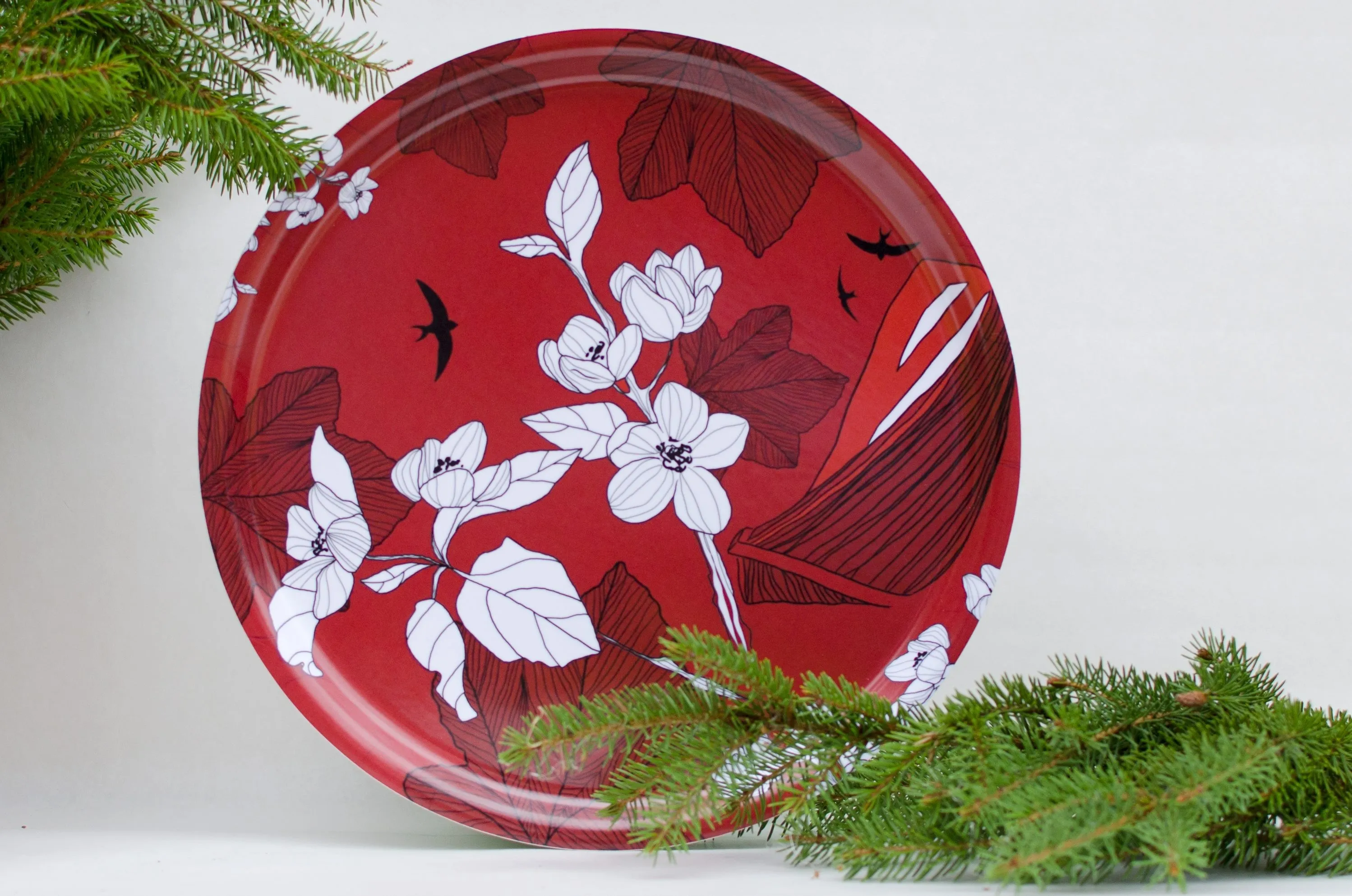 Det röda brickan har inspirerats av den röda färgen på våra traditionella österbottniska bondstugor. En äkta röd bricka.