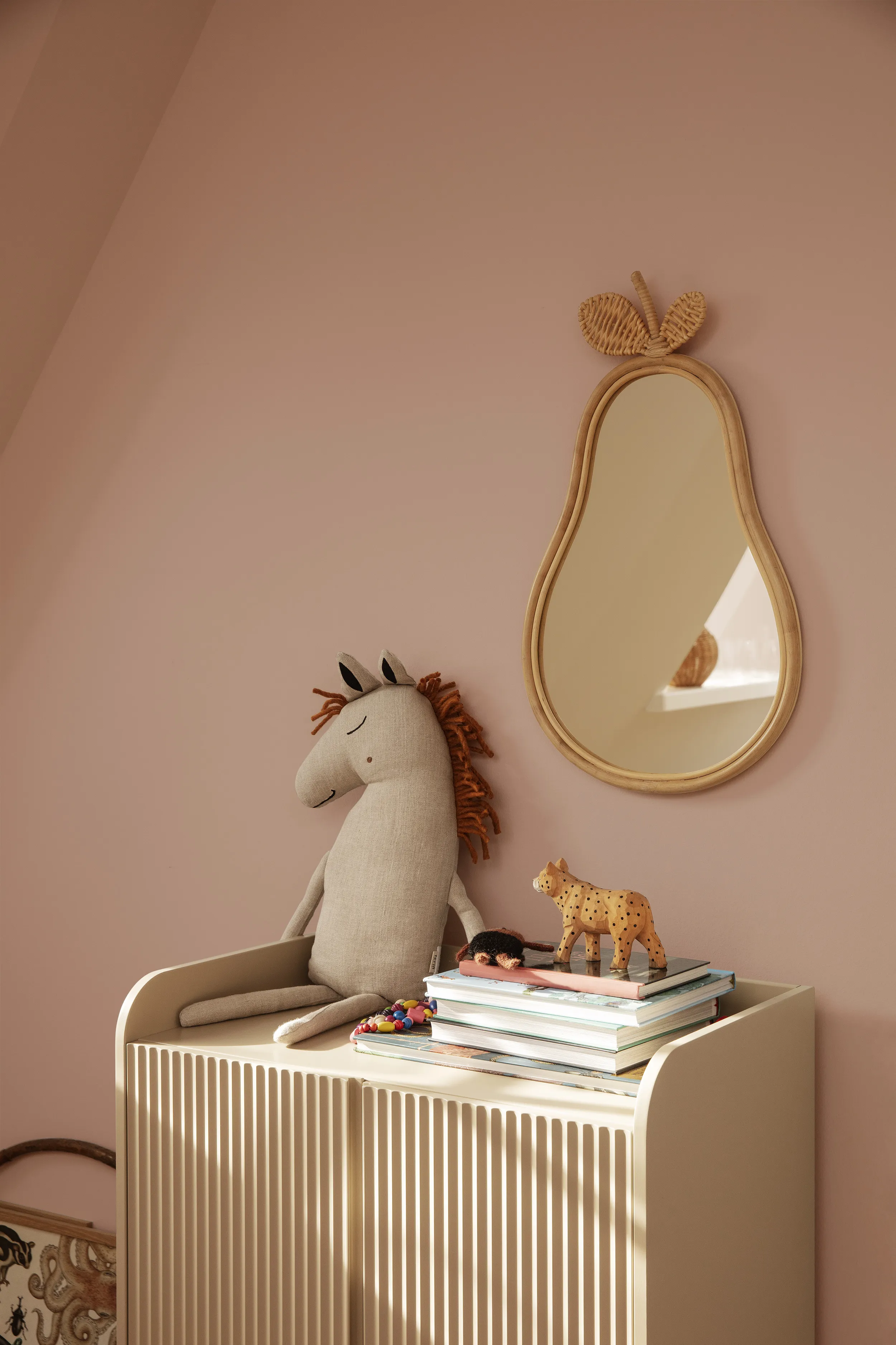 Päronformade spegeln Pear Mirror är lekfull med ram av bambu och rotting. Spegeln passar perfekt i barnrummet!