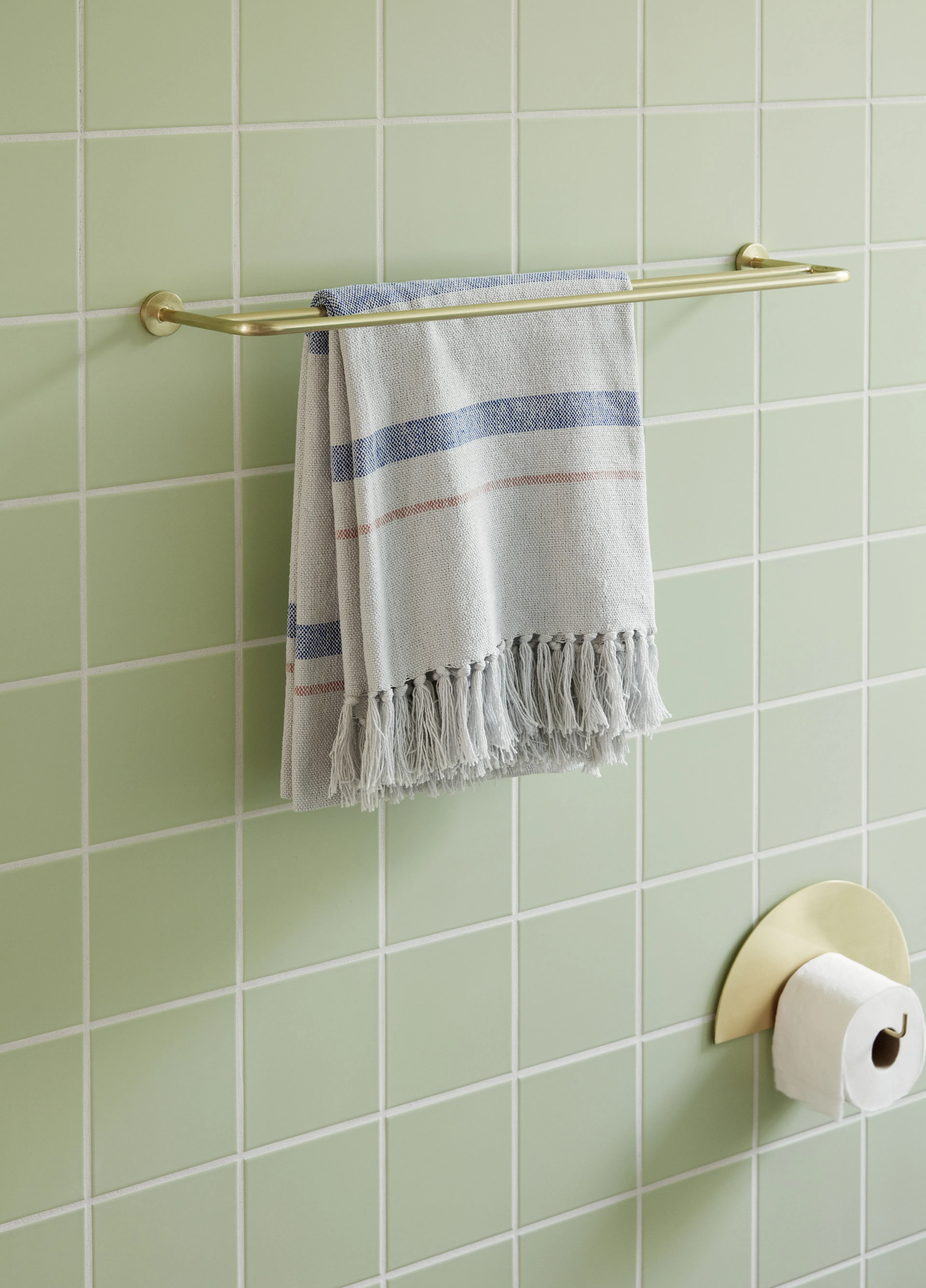 Handdukshängaren Pipe Towel Holder är en modern och stilren hängare för handdukar i badrummet.