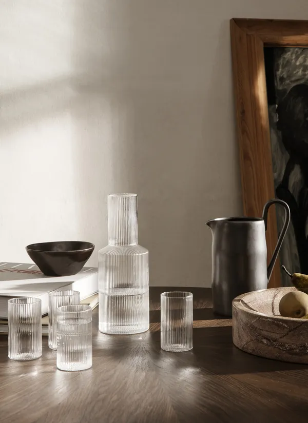 Glaskaraffen Ripple är munblåst och snygg. En fin karaff att ha till exempel på skrivbordet så du kommer ihåg att dricka under arbetsdagen. Karaffen rymmer 1 liter.