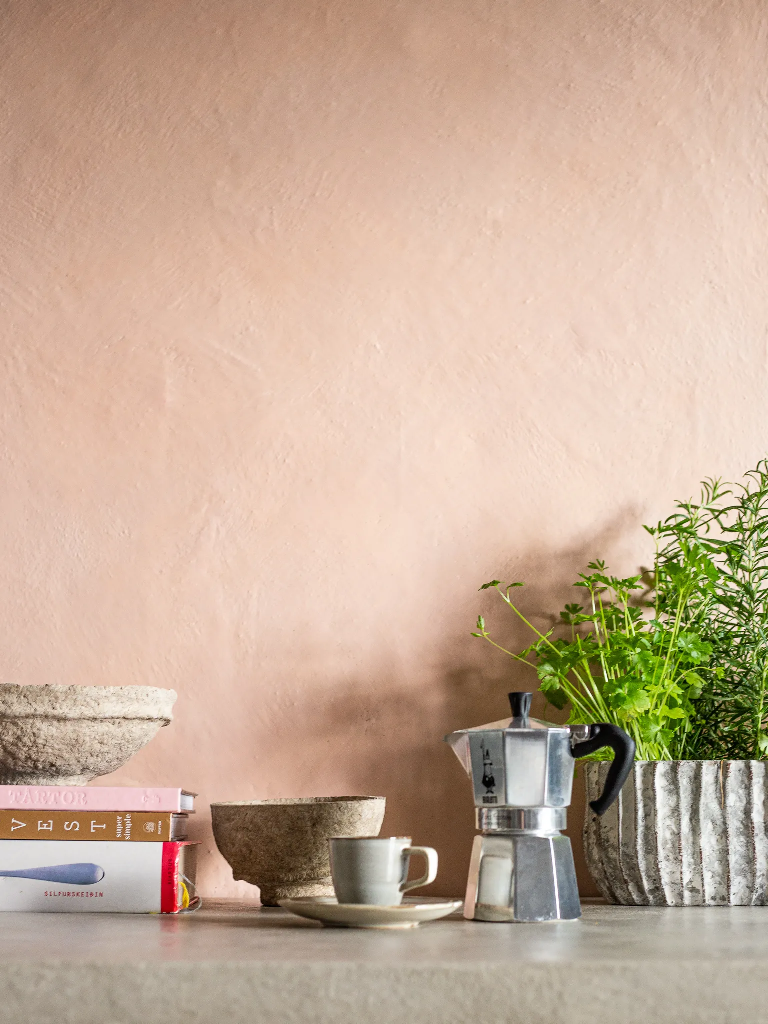Kalklitir Floria är en ekologisk och giftfri kalkfärg från Island. Denna rosa nyans ger rummet en lätt och glad atmosfär, samtidigt som den bevarar en 100 % matt yta som påminner om betong. Färgen andas och är luktfri, vilket gör den idealisk för alla rum där du vill lägga till värme och ljus.