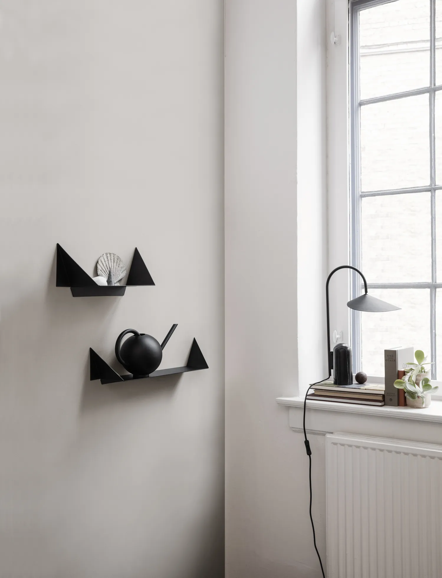Hyllan Gami Shelf är modern och stilfull. Metallhyllan har formen av ett vikt papper. En snygg hylla för fina föremål i vardagsrummet, för nycklar i hallen, för småsaker i hemmakontoret eller för kryddor i köket. Två storleksalternativ.
