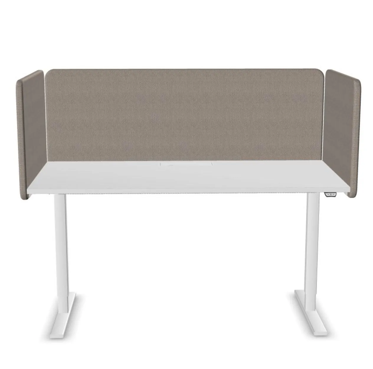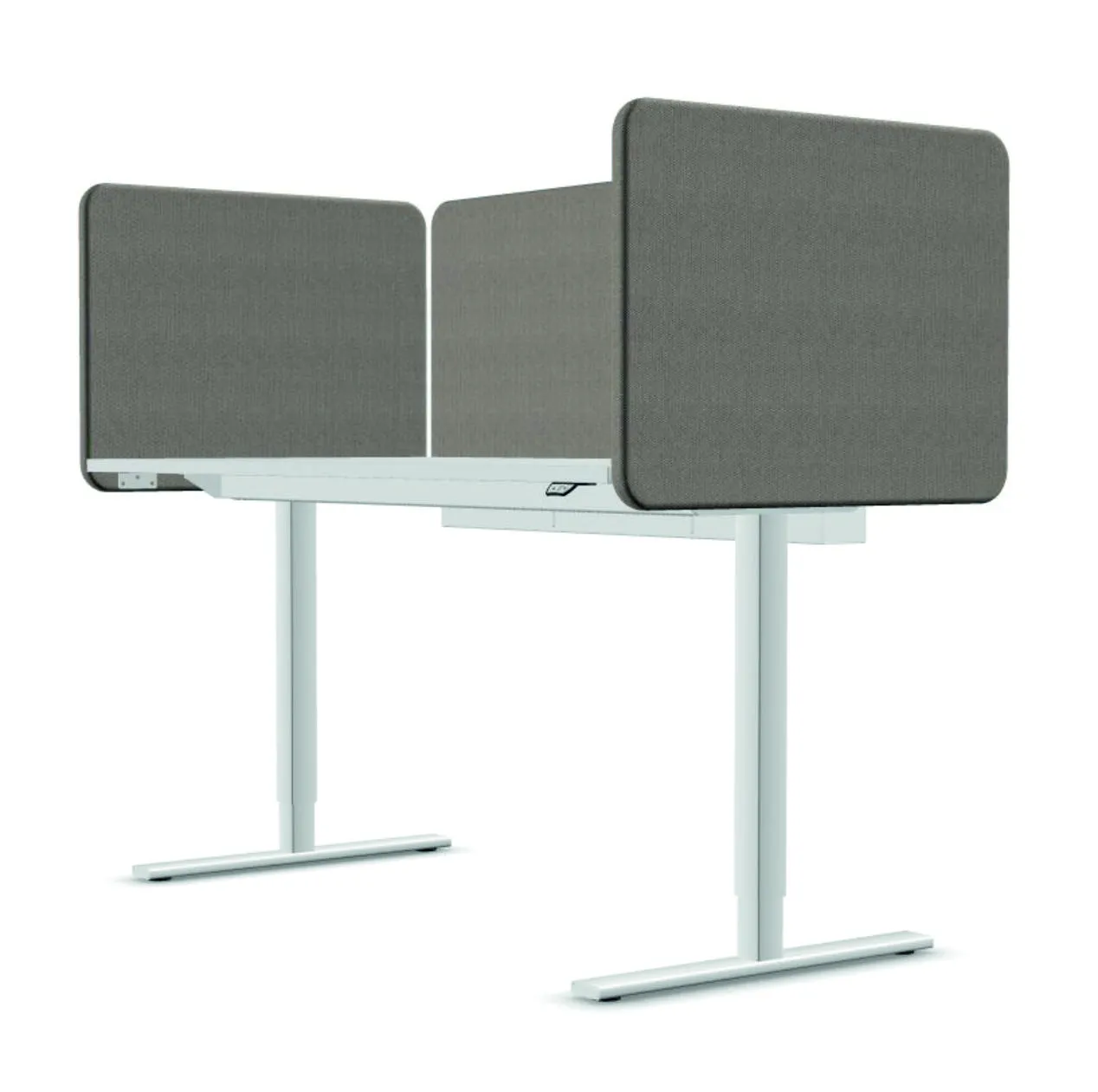 One höj- och sänkbart arbetsbord med tre akustikskärmar