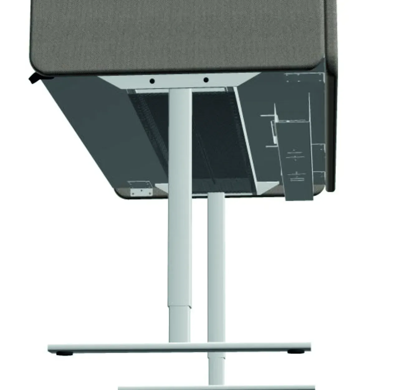 Skrivbordet One, med tre akustiskärmar i Meshtyg, är höj- och sänkbart och gör ditt hemmakontor mera ergonomiskt. Motorn som höjer skrivbordet startar och stannar mjukt. Det vita skrivbordet har hål för sladdar. Kabelhylla att fästa under bordet ingår.