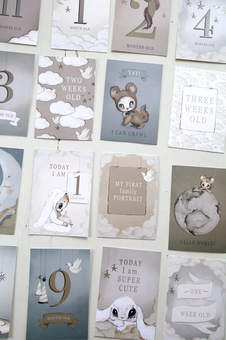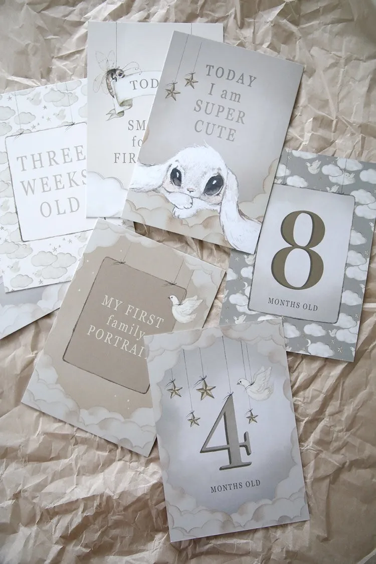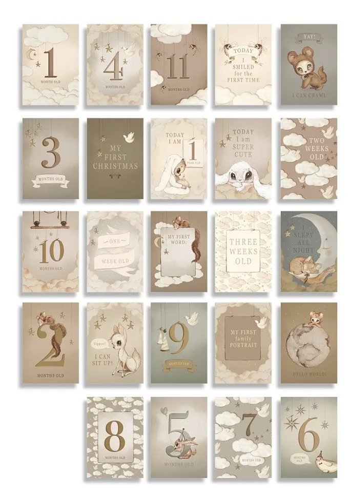 Med Mrs Mighettos Baby's First Year-korten samlas alla speciella stunder i barnets första år på ett vackert sätt. Förpackningen innehåller 24 kort med olika kort. Korten är en perfekt gåva till nyblivna föräldrar.