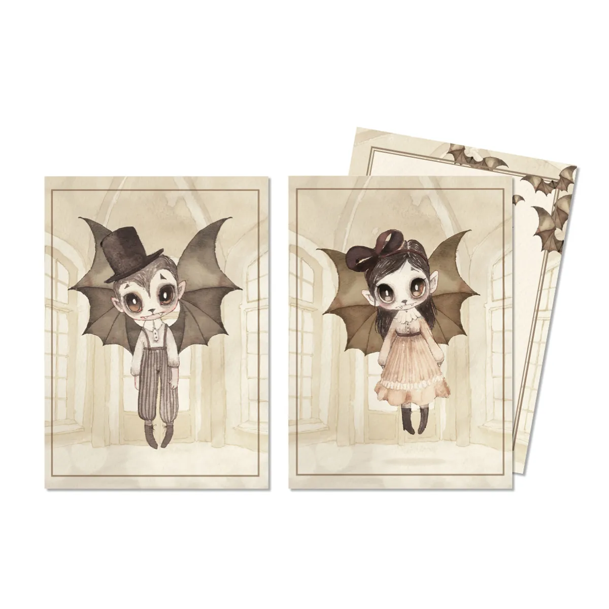 Boo Twins är två söta små kort med fladdermöss på. Korten passar bra till Halloween men minst lika bra resten av året. Ge som födelsedagskort till kompis eller barnbarn, eller rama in och häng på väggen.