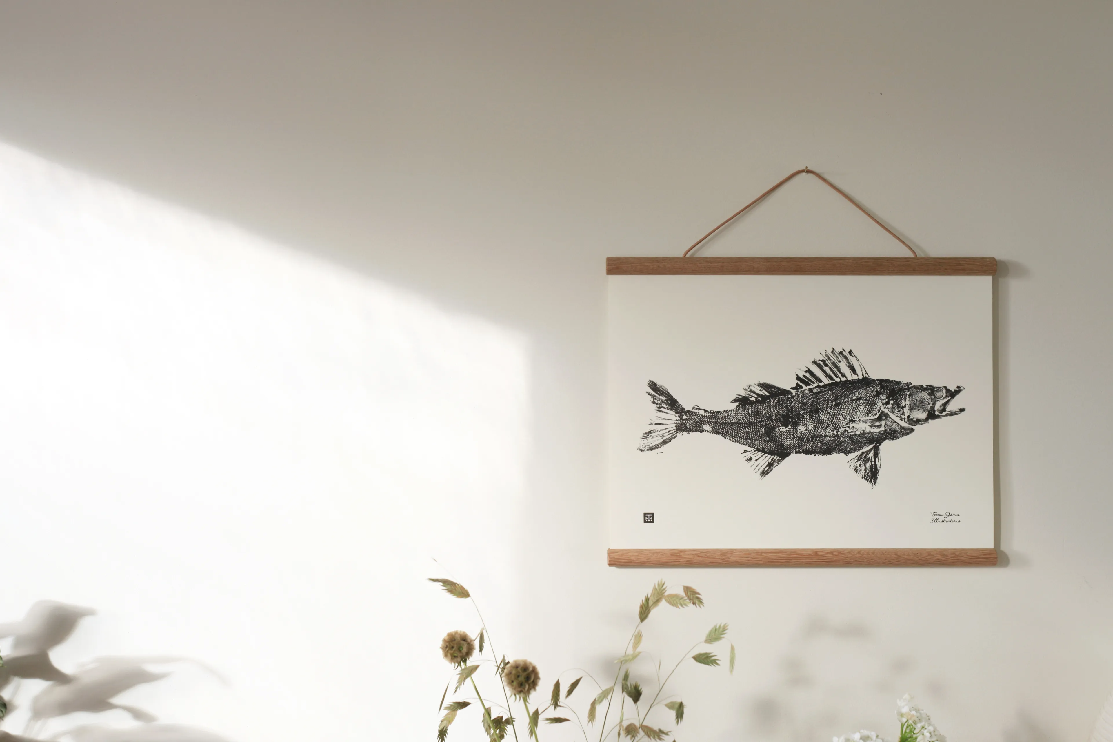 Teemu Järvis gös-poster är vacker. Motivet gjordes ursprungligen med den asiatiska gyotaku-trycktekniken. Placera affischen som ensamt blickfång på väggen eller kombinera med andra Teemu Järvi-posters.