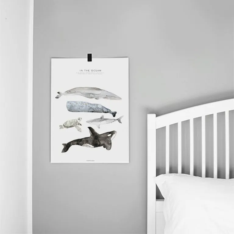 Fashionells In the Ocean barnrumsplansch med mäktiga havsdjur. Denna populära plansch passar lika bra till pojkar och flickor.