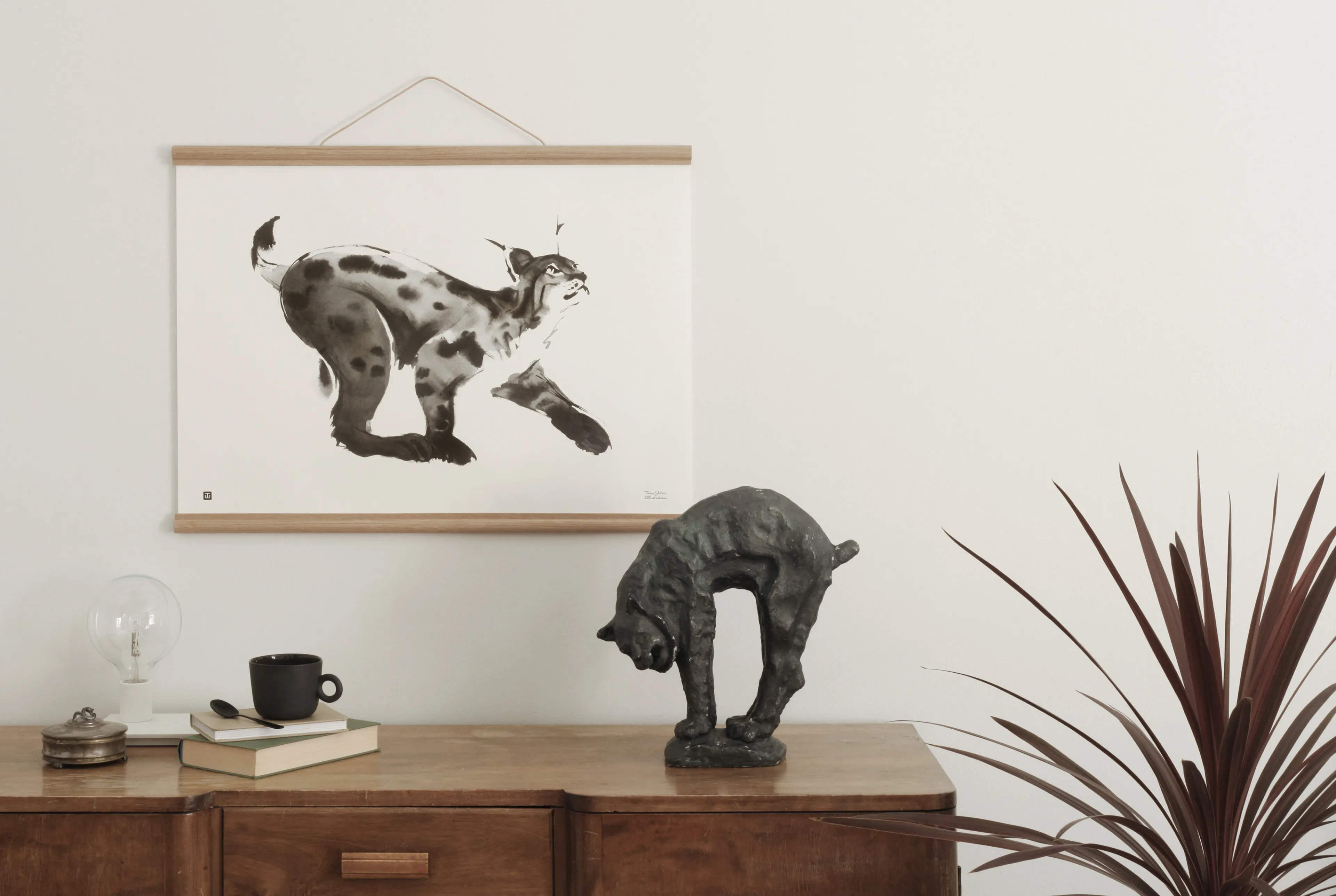 Teemu Järvi Illustrations svartvita plansch med lodjursmotiv. En inredningsdetalj som tilltalar alla naturvänner!