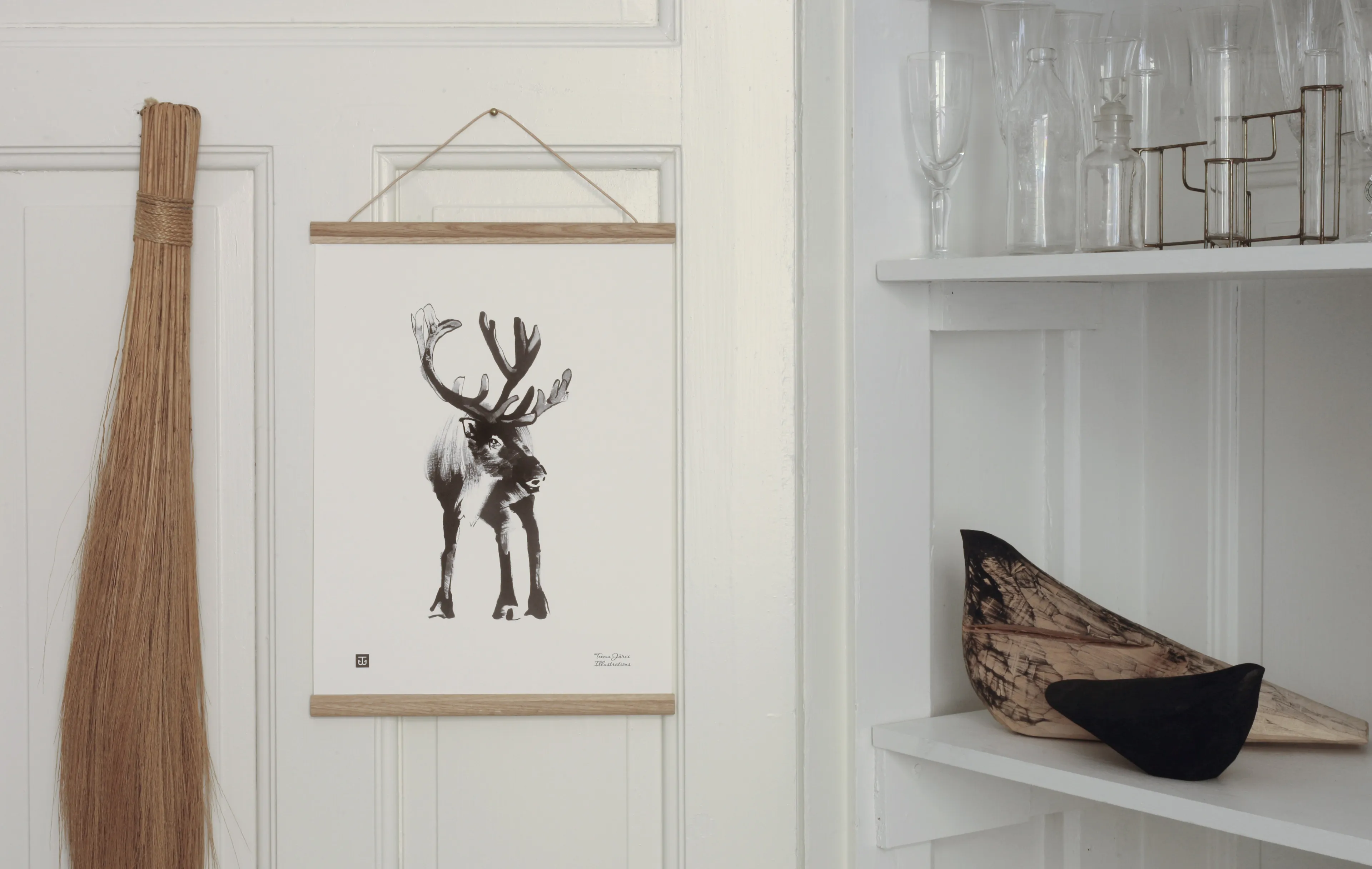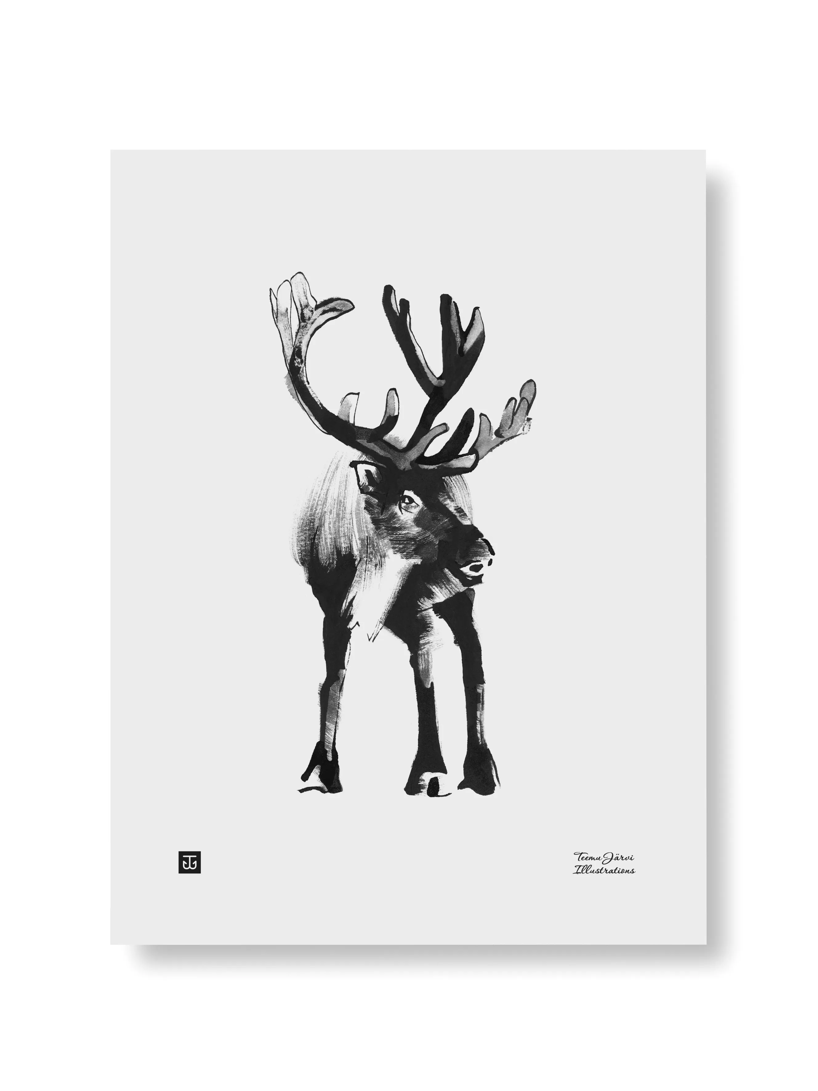 Teemu Järvi Illustrations svartvita Ren-plansch med en mysig ren. Denna stiliga djurplansch passar även fint till julen!