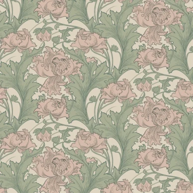 Bladtapeten Acanthus från Morris & Co med virvlande löv har ett regelbundet och stort mönster. Den klassiska tapeten är Morris & Co:s första. Tapeten passar i vardagsrum och matsal. Fyra färgalternativ.