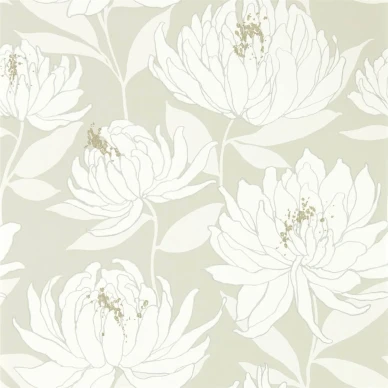 Harlequins stormönstrade Ananda-tapet med vackra tropiska blommor och blad har ett handritat mönster som målats i vattenfärg.