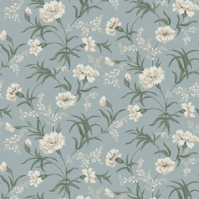 Boråstapeters blommiga tapet Ängsblomma har ett luftigt mönster av sirliga blommor. Mönstret är från 1946 och påminner om klassiskt finporslin. En fin tapet på en eller flera väggar i rummet, till exempel som sovrumstapet eller vardagsrumstapet.