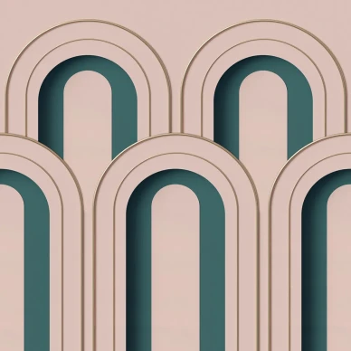 Rebel Walls muraltapet Arch är tuff med välvda, tredimensionella bågar. En tapet för den som vågar sticka ut, till vardagsrum eller matsal.