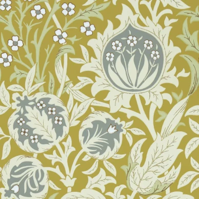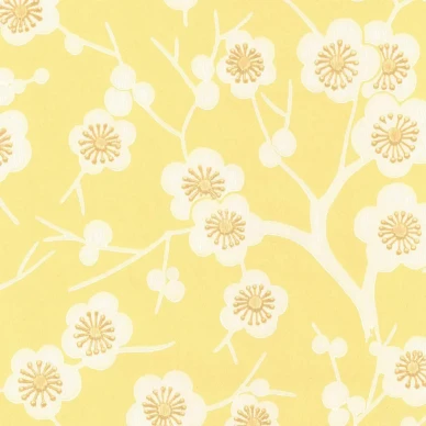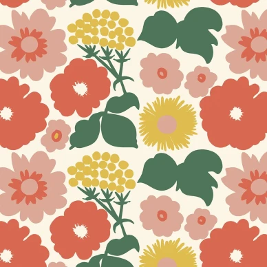 Blommiga papperstapeten Auringonkukka ger 1970-talskänsla. Retrotapeten passar i hallen, hemmakontoret eller vardagsrummet.