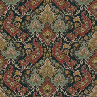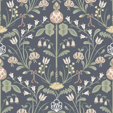 Tapeten Chamber Angels har hämtat inspiration från en takmålning på Kensington Palace i London. Tapeten är som en målning på väggen med dansande figurer, lövverk och mogna frukter. En tapet för vardagsrummet.