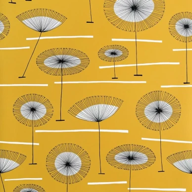 Dandelion Mobile är en retrotapet med stiliserade blommor från Miss Print.