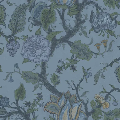Blommiga tapeten Elmire är klassisk med slingrande näckrosor och blad. Tapeten har inspirerats av Carl och Karin Larsson. Den blommiga tapeten i gammaldags stil passar i klassiska hem.