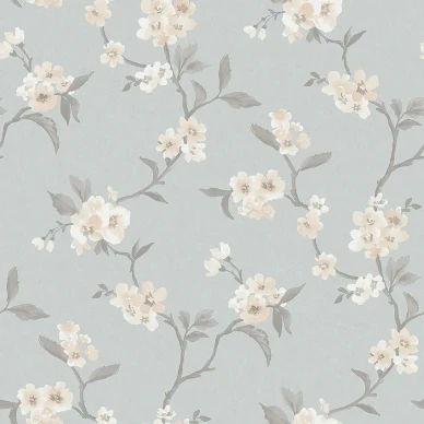 Emilie är en blommig, romantisk tapet som fått sitt namn efter fröken Emilie Piper på Löfstad slott. Tapeten passar klassisk inredning i sovrum, vardagsrum och barnrum.