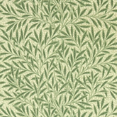 Blommiga tapeten Floral Fanfare har ett regelbundet tätt mönster av solfjäderformade blommor och bladverk. Inspirationen till mönstret dateras till 1880-1900-talet och konstnären George Charles Haité som gärna skapade stiliserade mönster i en mix av Arts and Crafts och Art Deco-stilarna.