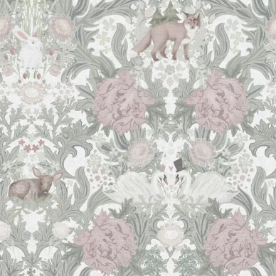 Flower Garden Mural är en praktfull blommig muraltapet som ger rummet intrycket av en stor och livlig väggmålning. Denna underbara blomsterdröm breder ut sig i puderroosa, ljusblå och honungsgula pastellnyanser, skapande en mjuk och drömlik atmosfär på en kittvit bakgrund. Blommorna växer från golvnivå och hänger i praktfulla buketter från taket, vilket skapar en dynamisk och tredimensionell effekt i rummet. Trots storleken på Flower Garden Mural-mönstret gör dess mjuka färgvärld och raffinerade detaljer den underbart lugn och inbjudande. Denna tapet förvandlar vilket utrymme som helst till en sagolik trädgård där fantasin får fritt spelrum och lyfter fram naturens skönhet i all sin prakt.