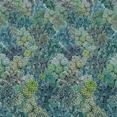 Cole & Son:s magiska skogstapet Forest med handritade träd på böljande kullar. Tapeten är starkt förknippad med våra barndomsminnen med Silvan-skogar i sagor och folksägner.