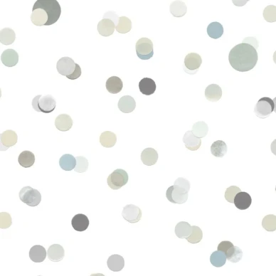 Rymdtapeten Glow in the Dark lyser i mörkret. På dagen är tapeten en regelbundet prickig tapet, på natten lyser månarna och stjärnorna. En spännande tapet till barnrummet!