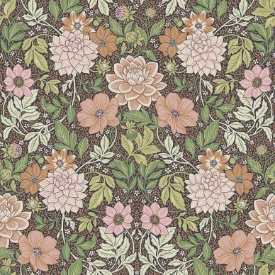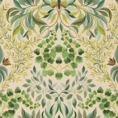 Blommiga tapeten Ikebana Damask från Designers Guild har ett tätt och regelbundet blommigt mönster, en vacker tapet som passar bra i hemmets alla rum.
