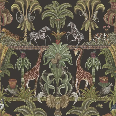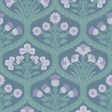Blommiga tapeten Jasmine & Serin Symphony har ett detaljerat mönster med fåglar och spretande lövverk. En fin bladtapet som passar i vardagsrum eller matsal.