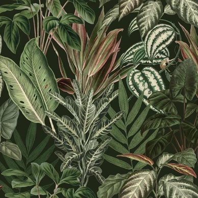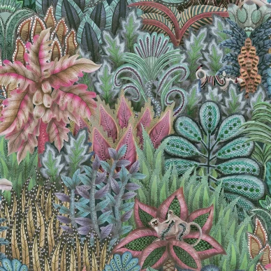 Tapeten Jungle Wall är färgglad, stormönstrad och härligt levande. En fantastisk tapet med synliga penseldrag som drar blickarna till sig. Tapeten fås med och utan djur – hittar du aporna, lemurerna, jaguarerna, papegojorna och de andra djuren på tapeten med djur? Den livfulla tapeten passar i sovrum, matsal, barnrum eller ungdomsrum.