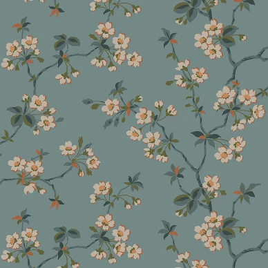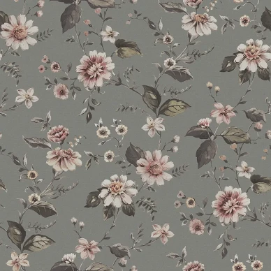 Sandbergs muraltapet Kajsa är en förstorad variant av populära Rosenholm-tapeten. Det stora blommönstret ger rummet en drömlik känsla och passar bra i sovrummet.